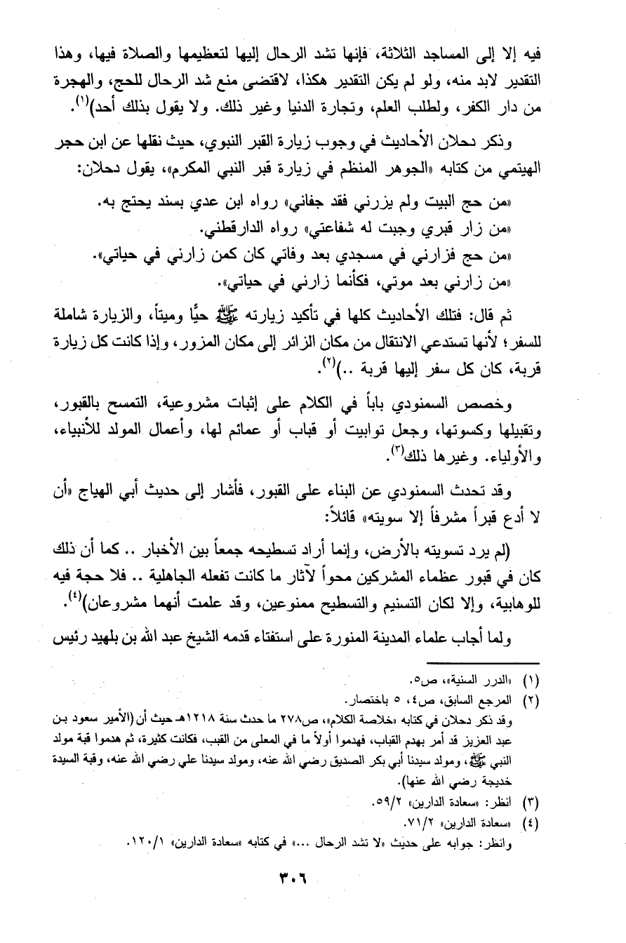 4 "سعادة الدارين" 2/71. وانظر: جوابه على حديث "لا تشد الرحال ... " في كتابه "سعادة الدارين" 1/120.