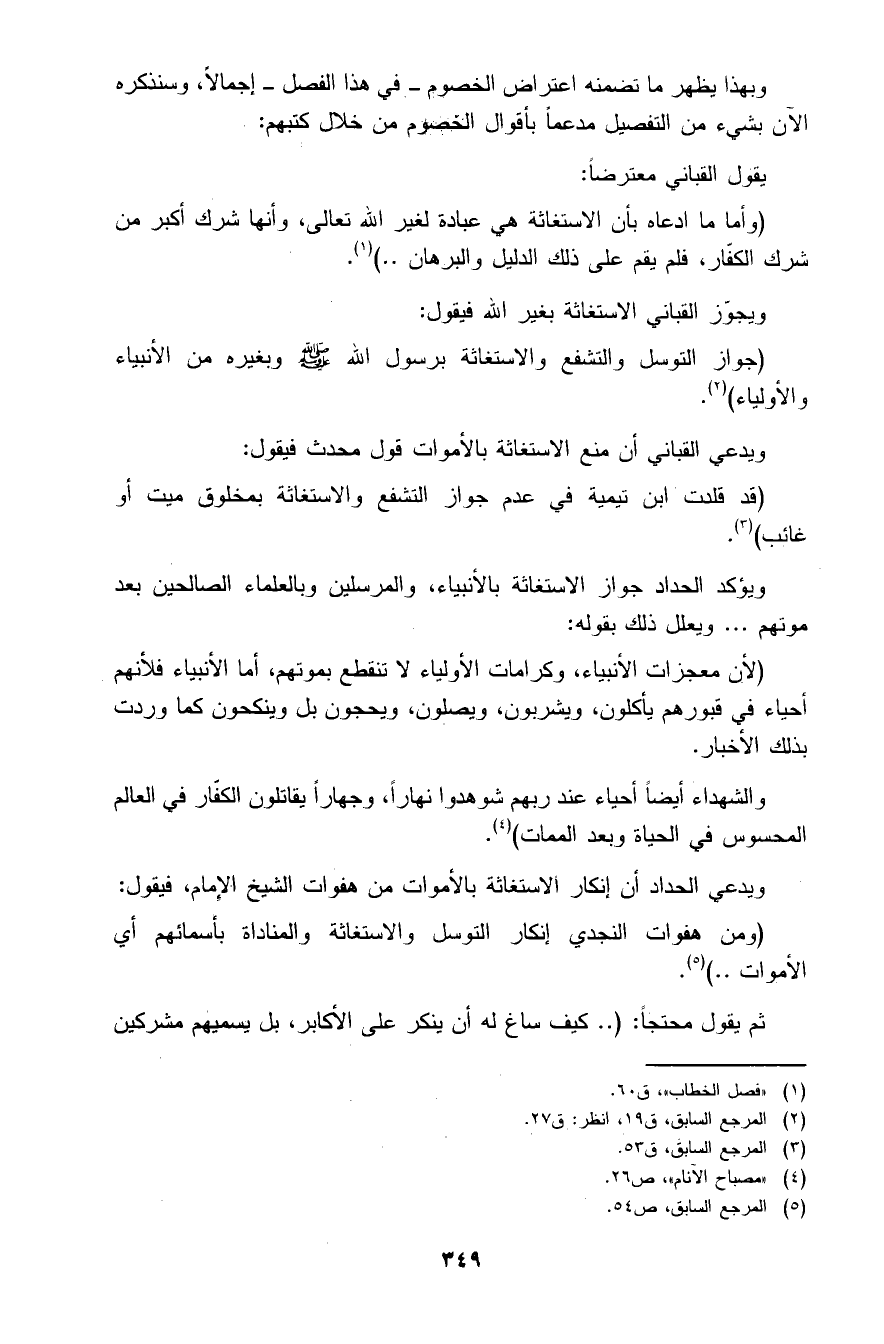 وبهذا يظهر ما تضمنه اعتراض الخصوم في هذا الفصل إجمالا، وسنذكره الآن بشيء من التفصيل مدعما بأقوال الخصوم من خلال كتبهم: يقول القباني معترضا: