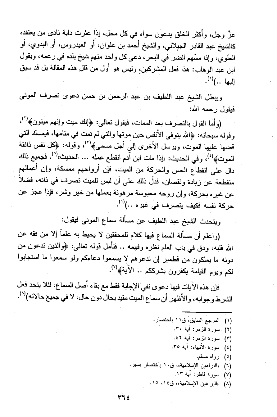 ويبطل الشيخ عبد اللطيف بن عبد الرحمن بن حسن دعوى تصرف الموتى فيقول رحمه الله:
