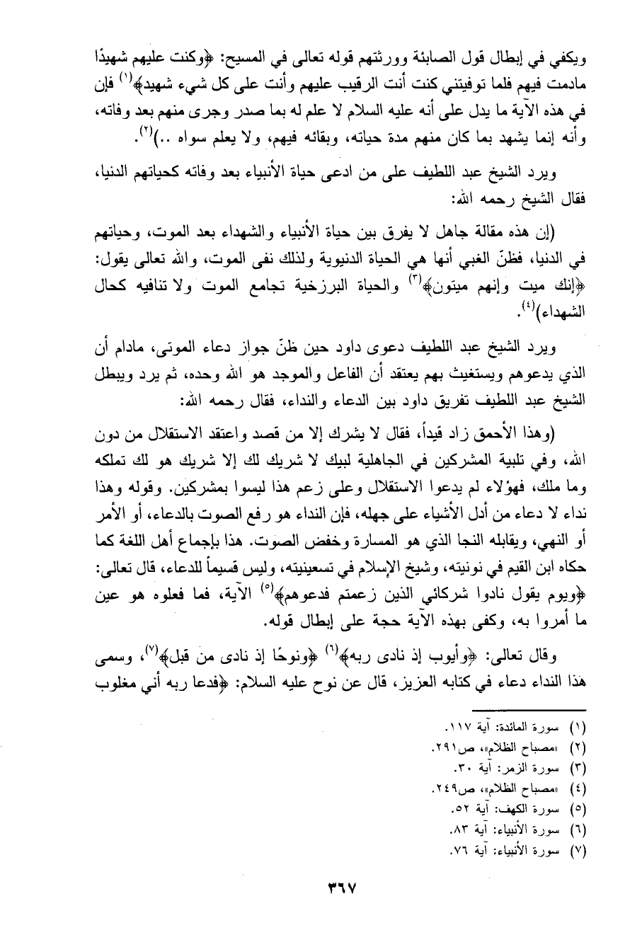 ويرد الشيخ عبد اللطيف على من ادعى حياة الأنبياء بعد وفاتهم كحياتهم الدنيا، فقال الشيخ رحمه الله: