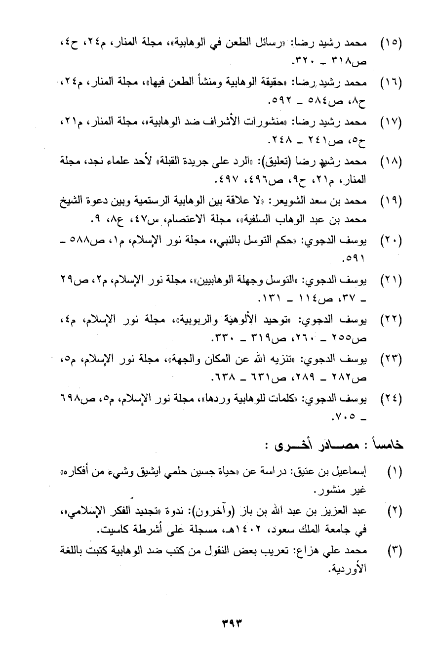 (15) محمد رشيد رضا: "رسائل الطعن في الوهابية"، مجلة المنار، م 24، ح 4، ص 318- 320.