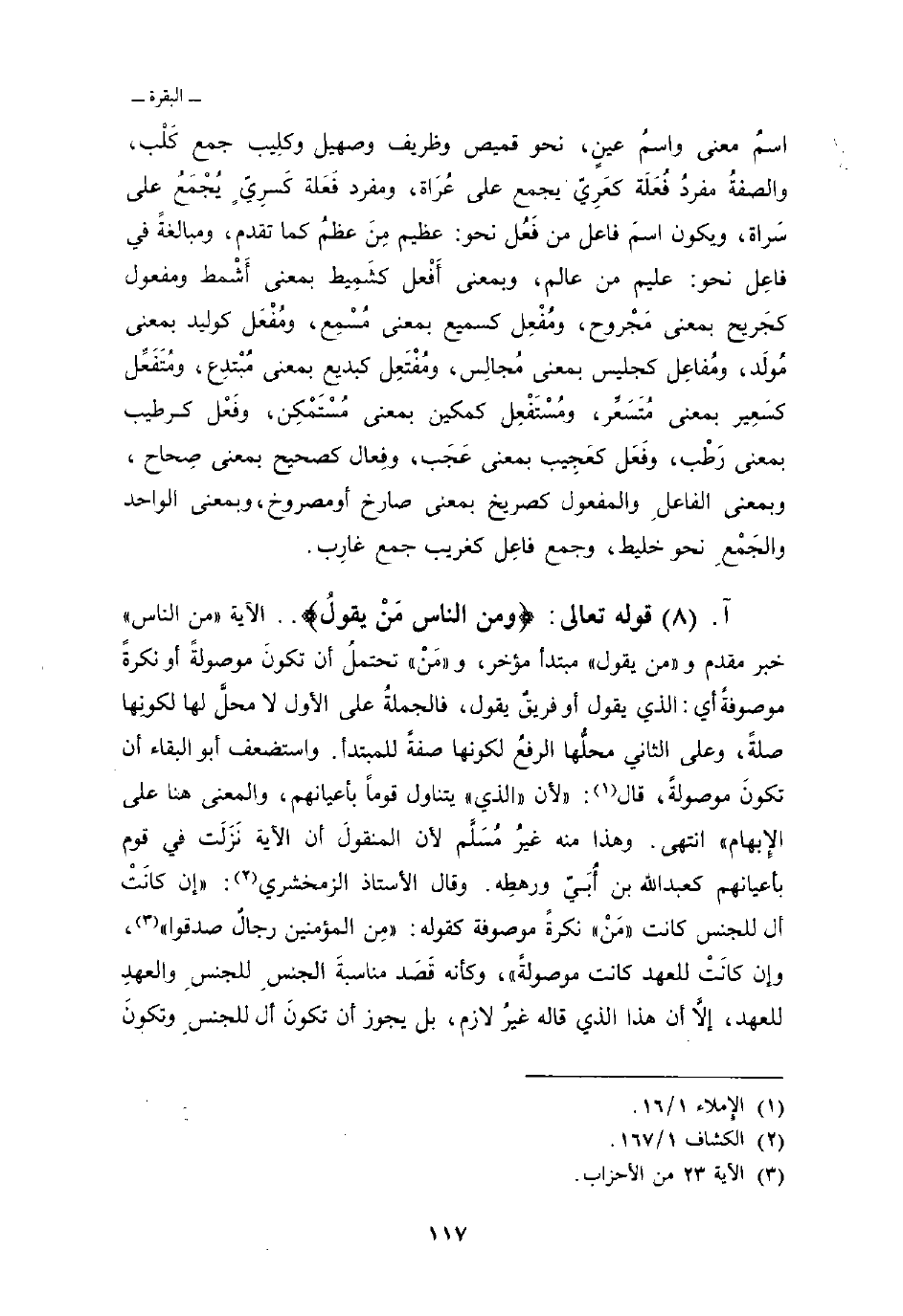 قوله تعالى: {وَمِنَ الناس مَن يَقُولُ} . . الآية {مِنَ الناس} خبر مقدم و «من يقول» مبتدأ مؤخر، و «مَنْ» تحتملُ أن تكونَ موصولةً أو نكرةً موصوفةً أي: الذي يقول أو فريقٌ يقول: فالجملةُ على الأول لا محلَّ لها لكونِها صلةً، وعلى الثاني محلُّها الرفعُ لكونها صفةً للمبتدأ. واستضعف أبو البقاء أن تكونَ موصولةً، قال: لأن «الذي» يتناول قوماً بأعيانهم، والمعنى هنا على الإِبهام «انتهى. وهذا منه غيرُ مُسَلَّم لأن المنقولَ أن الآية نَزَلَت في قوم بأعيانهم كعبد الله بن أُبَيّ ورهطِه. وقال الأستاذ الزمخشري:» إن كانَتْ أل للجنس كانت «مَنْ» نكرةً موصوفة كقوله: {مِّنَ المؤمنين رِجَالٌ صَدَقُواْ} [الأحزاب: 23] ، وإن كانَتْ للعهد كانت موصولةً «، وكأنه قَصَد مناسبةَ الجنسِ للجنسِ والعهدِ للعهد، إلاَّ أن هذا الذي قاله غيرُ لازم، بل يجوز أن تكونَ أل للجنسِ وتكونَ»