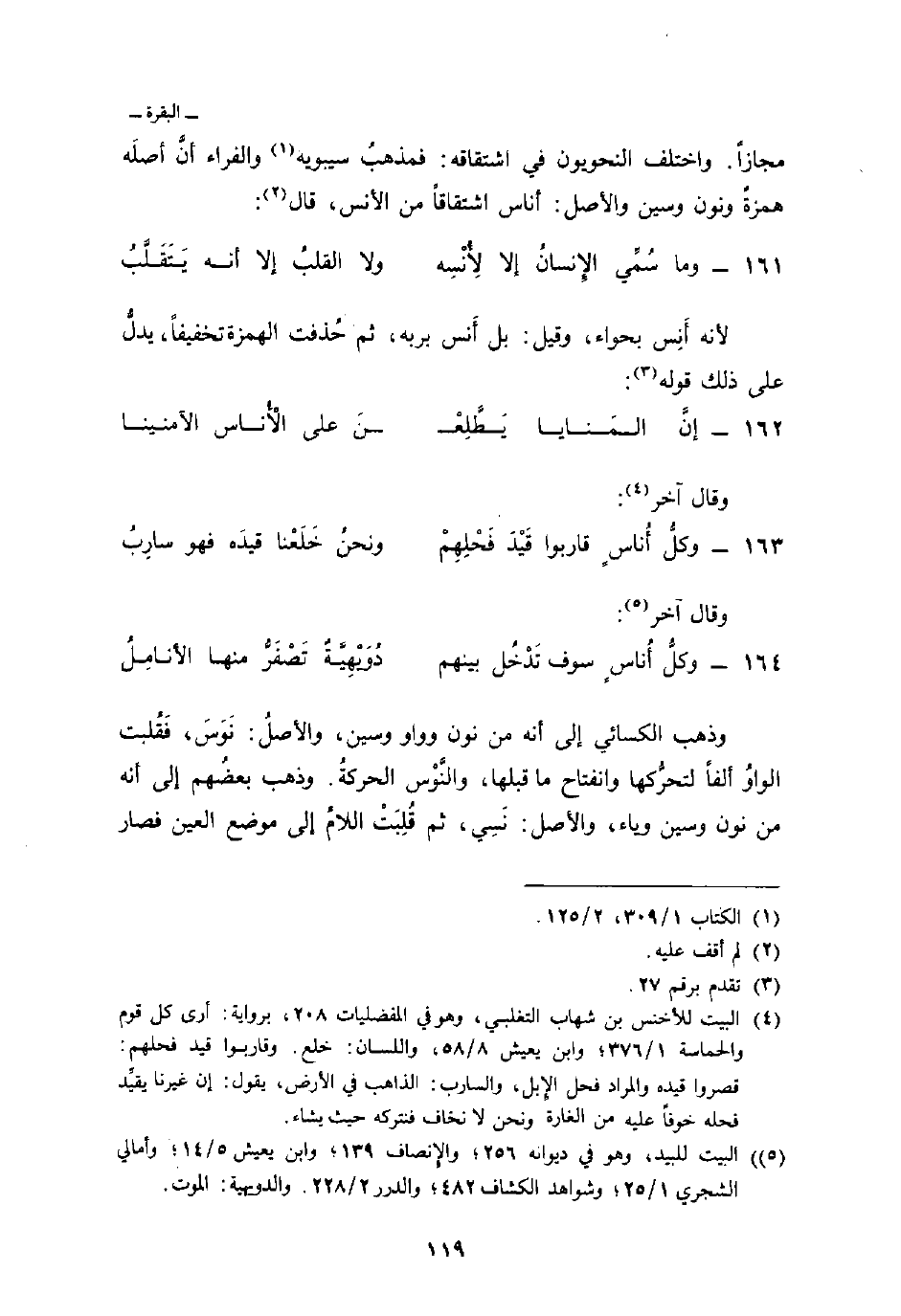 مجازاً. واختلف النحويون في اشتقاقه: فمذهبُ سيبويه والفراء أنَّ أصلَه همزةٌ ونون وسين والأصل: أناس اشتقاقاً من الأنس، قال: