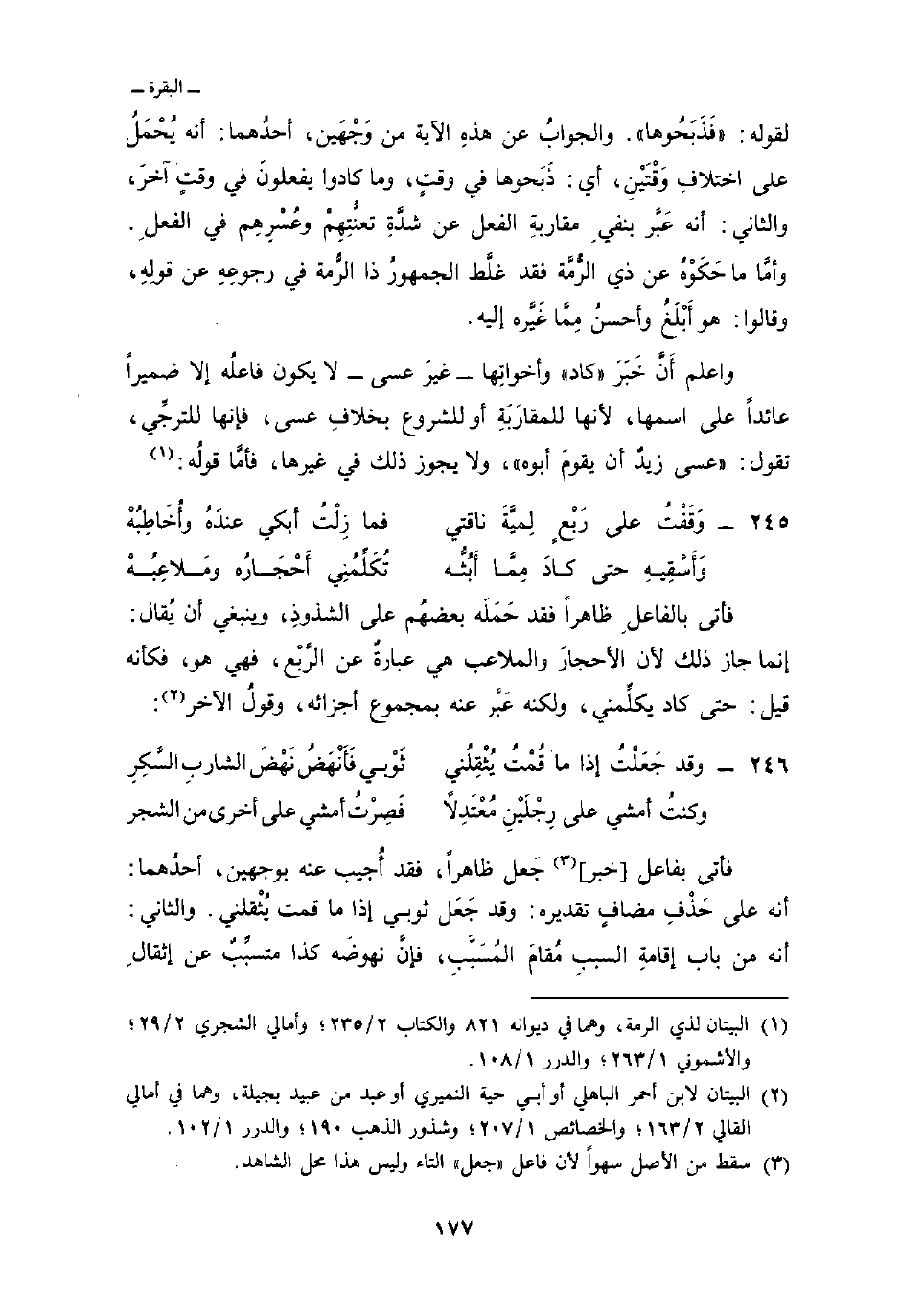 وأمَّا ما حَكَوْهُ عن ذي الرُّمَّة فقد غلَّط الجمهورُ ذا الرُّمة في رجوعِهِ عن قولِهِ، وقالوا: هو أَبْلَغُ وأحسنُ مِمَّا غَيَّره إليه.