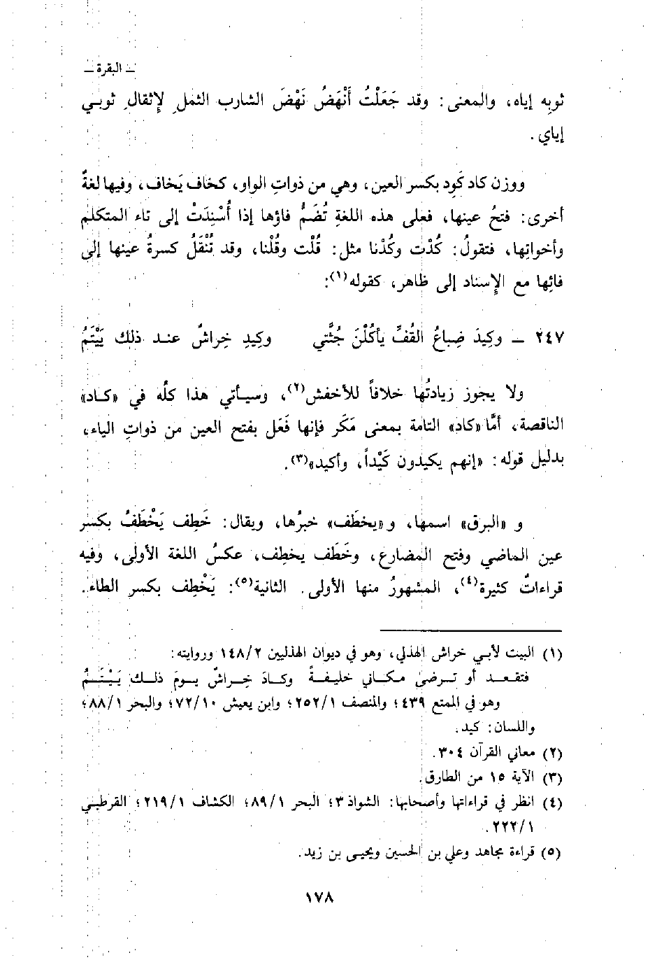 ولا يجوز زيادتُها خلافاً للأخفشِ، وسيأتي هذا كلُه في «كاد» الناقصة، أمَّا «كاد» التامة بمعنى مَكَر فإنها فَعَل بفتح العين من ذواتِ الياء، بدليل قوله: {إِنَّهُمْ يَكِيدُونَ كَيْداً * وَأَكِيدُ كَيْداً} [الطارق: 15 - 16] .