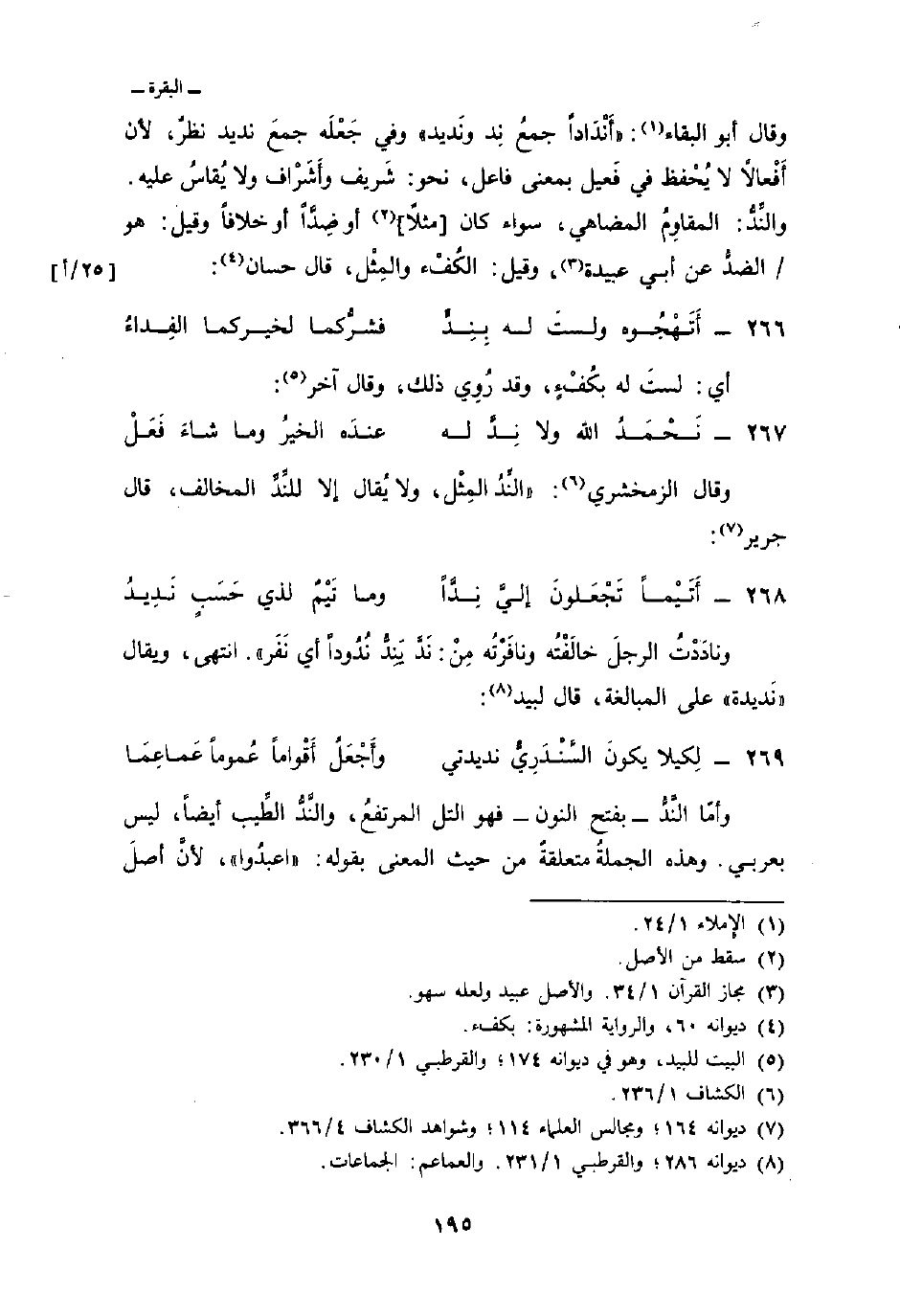 وأمَّا النَّدُّ بفتح النون فهو التل المرتفعُ، والنَّدُّ الطِّيب أيضاً، ليس بعربي. وهذه الجملةُ متعلقةٌ من حيث المعنى بقوله: «اعبدُوا» ، لأنَّ أصلَ