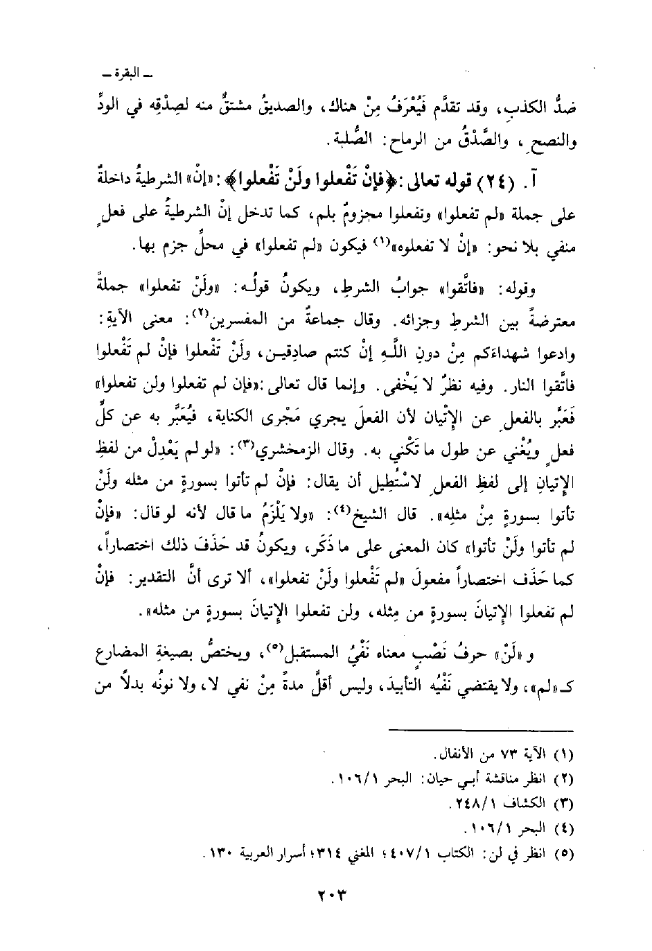 قوله تعالى: {فَإِن لَّمْ تَفْعَلُواْ وَلَن تَفْعَلُواْ} : «إنْ» الشرطيةُ داخلةٌ على جملة «لم تفعلوا» وتفعلوا مجزومٌ بلم، كما تدخل إنْ الشرطيةُ على فعلٍ منفي بلا نحو: {إنْ لا تفعلوه} [الأنفال: 73] فيكون «لم تفعلوا» في محلِّ جزم بها.