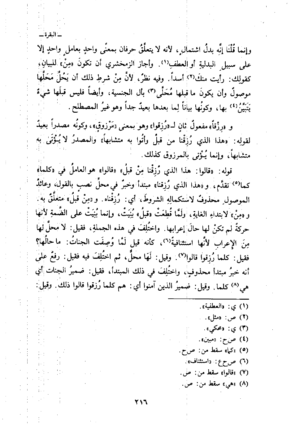 وإنما قُلْنَا بدلُ اشتمالٍ، لأنه لا يتعلَّقُ حرفان بمعنىً واحدٍ بعاملٍ واحدٍ إلا على سبيلِ البدليةِ أو العطفِ. وأجاز الزمخشري أن تكونَ» مِنْ «للبيانِ، كقولِك: رأيت منكَ أسداً. وفيه نظرٌ، لأنَّ مِنْ شرطِ ذلك أن يَحُلَّ مَحَلَّها موصولٌ وأن يكونَ ما قبلَها مُحَلَّى بأل الجنسية، وأيضاً فليس قبلَها شيءٌ يَتَبَيَّنُ بها، وكونُها بياناً لِما بعدها بعيدٌ جداً وهو غيرُ المصطلح.