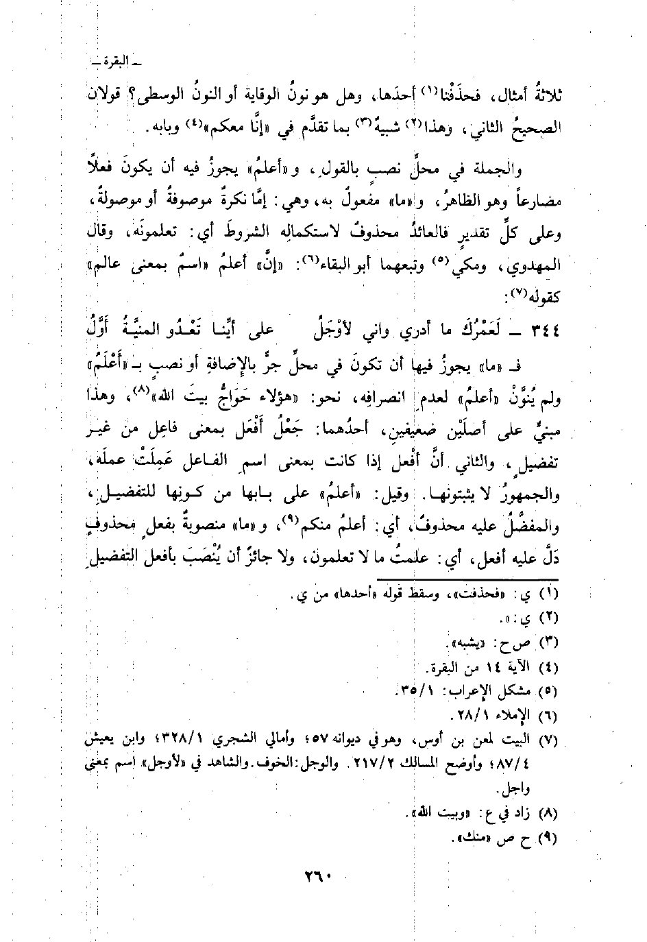 ف «ما» يجوزُ فيها أن تكونَ في محلِّ جرٍّ بالإِضافةِ أو نصبٍ ب «أَعْلَمُ» ولم يُنوَّنْ «أعلمُ» لعدمِ انصرافِه، نحو: «هؤلاء حَوَاجُّ بيتَ الله» وهذا مبنيٌّ على أصلَيْن ضعيفينِ، أحدُهما: جَعْلُ أَفْعَل بمعنى فاعِل من غير تفضيلٍ، والثاني أنَّ أفْعل إذا كانت بمعنى اسمِ الفاعل عَمِلَتْ عملَه، والجمهورُ لا يثبتونها.