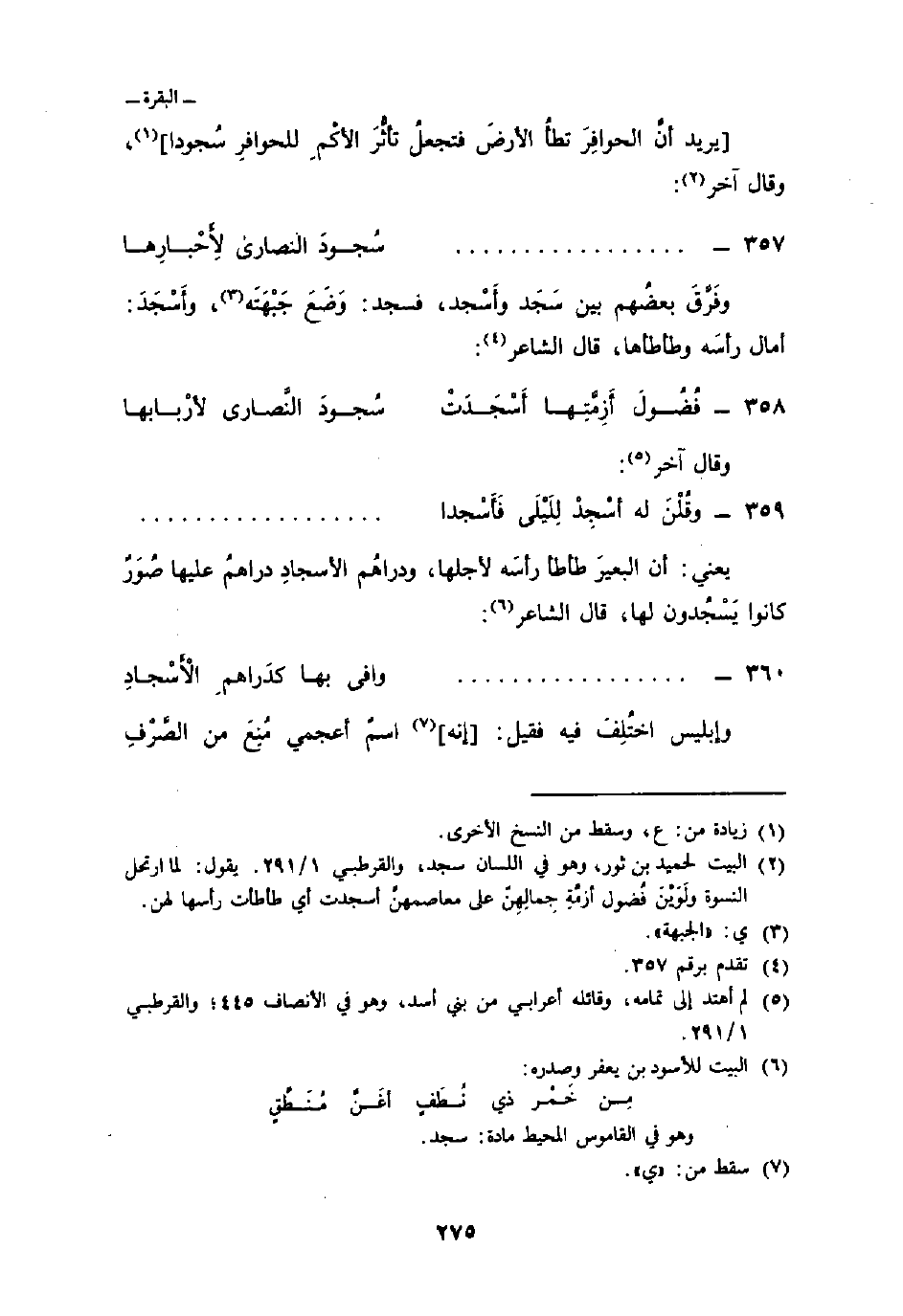 360 -. . . . . . . . . . . . . . . . . . . . . . . . . . . . . . . . . . وافى بها كدَراهمِ الأَسْجادِ ... وإبليس اختُلِفَ فيه فقيل: [إنه] اسمٌ أعجمي مُنِعَ من الصَّرْفِ