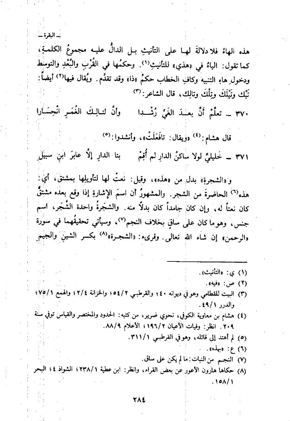و» الشجرةِ «بدل من» هذه «، وقيل: نعتٌ لها لتأويلِها بمشتق، أي: هذه الحاضرةَ من الشجر. والمشهورُ أن اسمَ الإِشارةِ إذا وقع بعده مشتقٌّ كان نعتاً له، وإن كان جامداً كان بدلاً منه. والشجَرةُ واحدة الشَّجَر، اسم جنس، وهو ما كان على ساقٍ بخلاف النجم، وسيأتي تحقيقُهما في سورة» الرحمن «إن شاء الله تعالى. وقرئ:» الشجرة «بكسر الشينِ والجيمِ