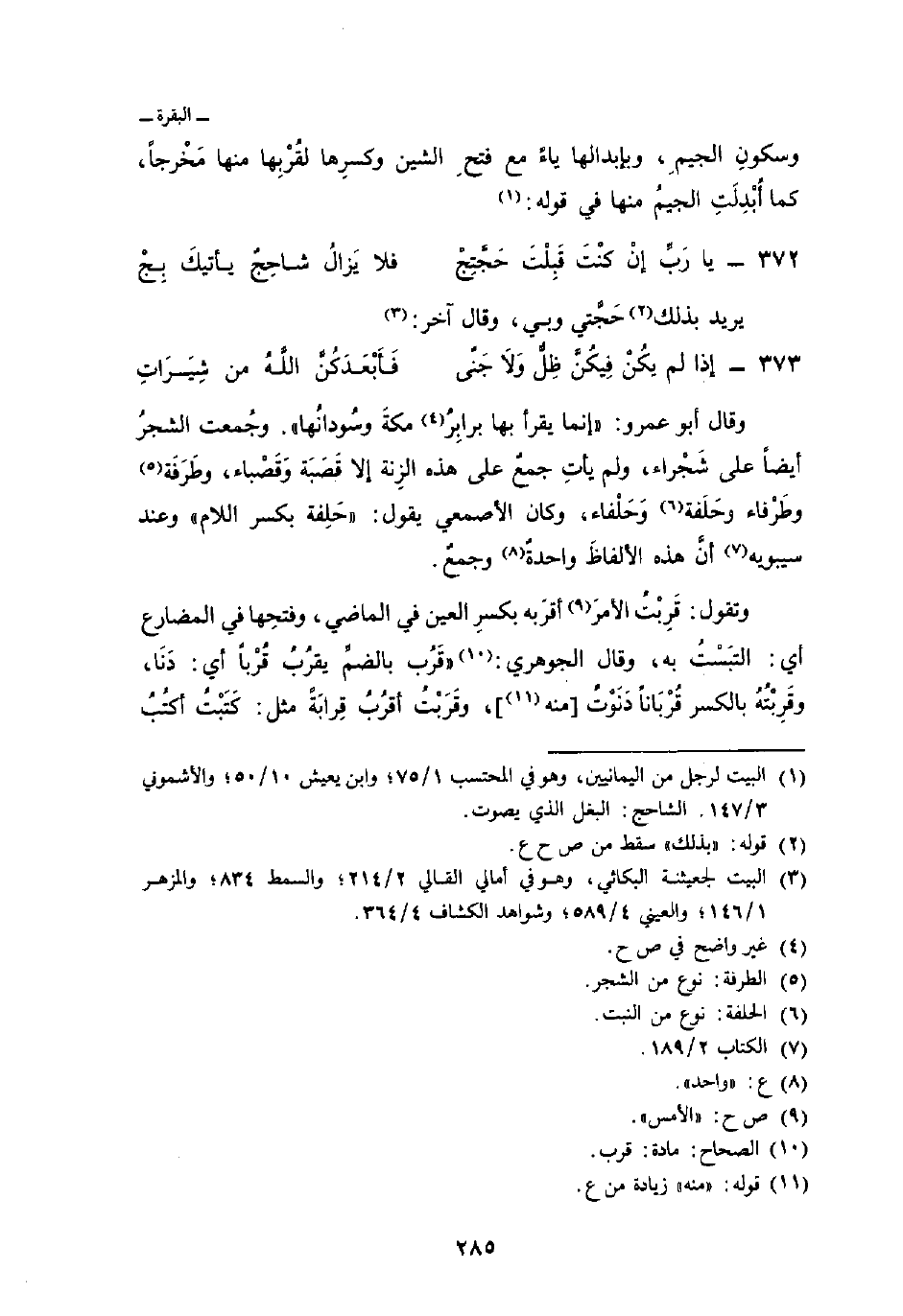 وقال أبو عمرو:» إنما يقرأ بها برابِرُ مكةَ وسُودانُها «. وجُمعت الشجرُ أيضاً على شَجْراء، ولم يأتِ جمعٌ على هذه الزِنة إلا قَصَبَة وَقَصْباء، وطَرَفَة وطَرْفاء وحَلَفة وحَلْفاء، وكان الأصمعي يقول:» حَلِفة بكسر اللام «وعند سيبويه أنَّ هذه الألفاظَ واحدةٌ وجمعٌ.