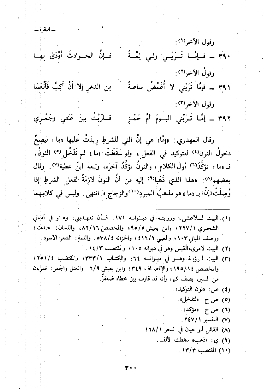 وقال المهدوي: «إما» هي إنْ التي للشرطِ زِيدَتْ عليها «ما» ليصِحَّ دخولُ النون للتوكيدِ في الفعلِ، ولو سَقَطَتْ «ما» لم تَدْخُلِ النونُ، ف «ما» تؤكِّدُ أولَ الكلامِ، والنونُ تؤكِّدُ آخرَه «وتبعه ابنُ عطية. وقال بعضهم:» هذا الذي ذَهَبا إليه من أنَّ النونَ لازِمَةٌ لفعلِ الشرطِ إذا وُصِلَتْ «إنْ» ب «ما» هو مذهبُ المبردِ والزجاجِ «. انتهى. وليس في كلامِهما