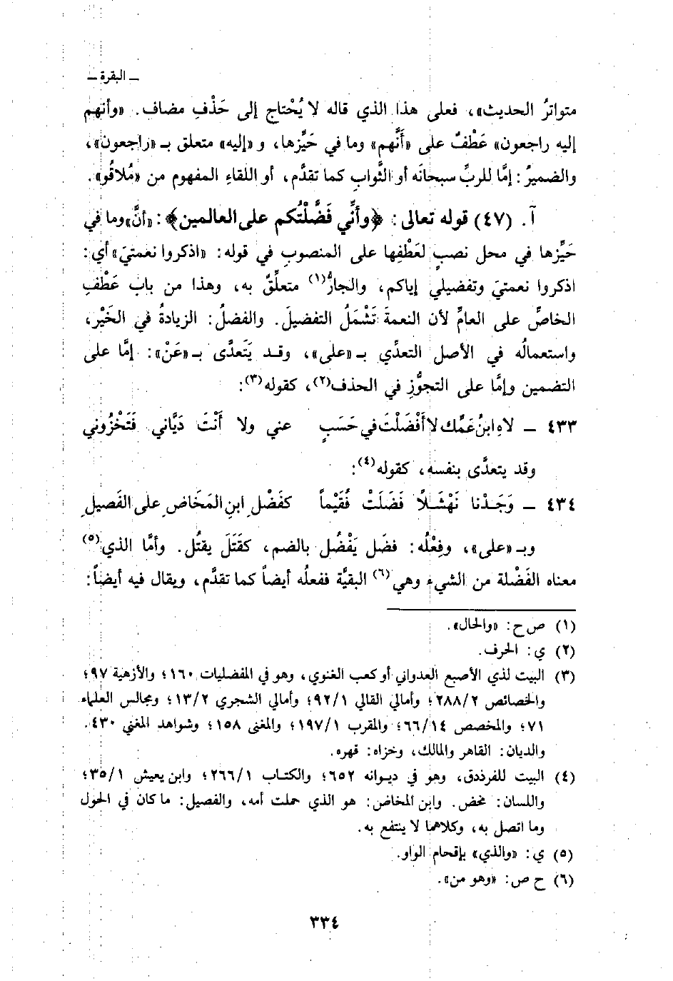 قوله تعالى: {وَأَنِّي فَضَّلْتُكُمْ عَلَى العالمين} : «أنَّ» وما في حَيِّزها في محل نصبٍ لعَطْفِها على المنصوبِ في قوله: {اذكروا نِعْمَتِي} أي: اذكروا نعمتيَ وتفضيلي إياكم، والجارُّ متعلَِّقٌ به، وهذا من الباب عَطْفِ الخاصِّ على العامِّ لأن النعمةَ تَشْمَلُ التفضيلَ. والفضلُ: الزيادةُ في الخَيْر، واستعمالُه في الأصل التعدِّي ب «على» ، وقد يَتَعدَّى ب «عَنْ» : إمَّا على التضمين وإمَّا على التجوُّزِ في الحذف، كقوله:
