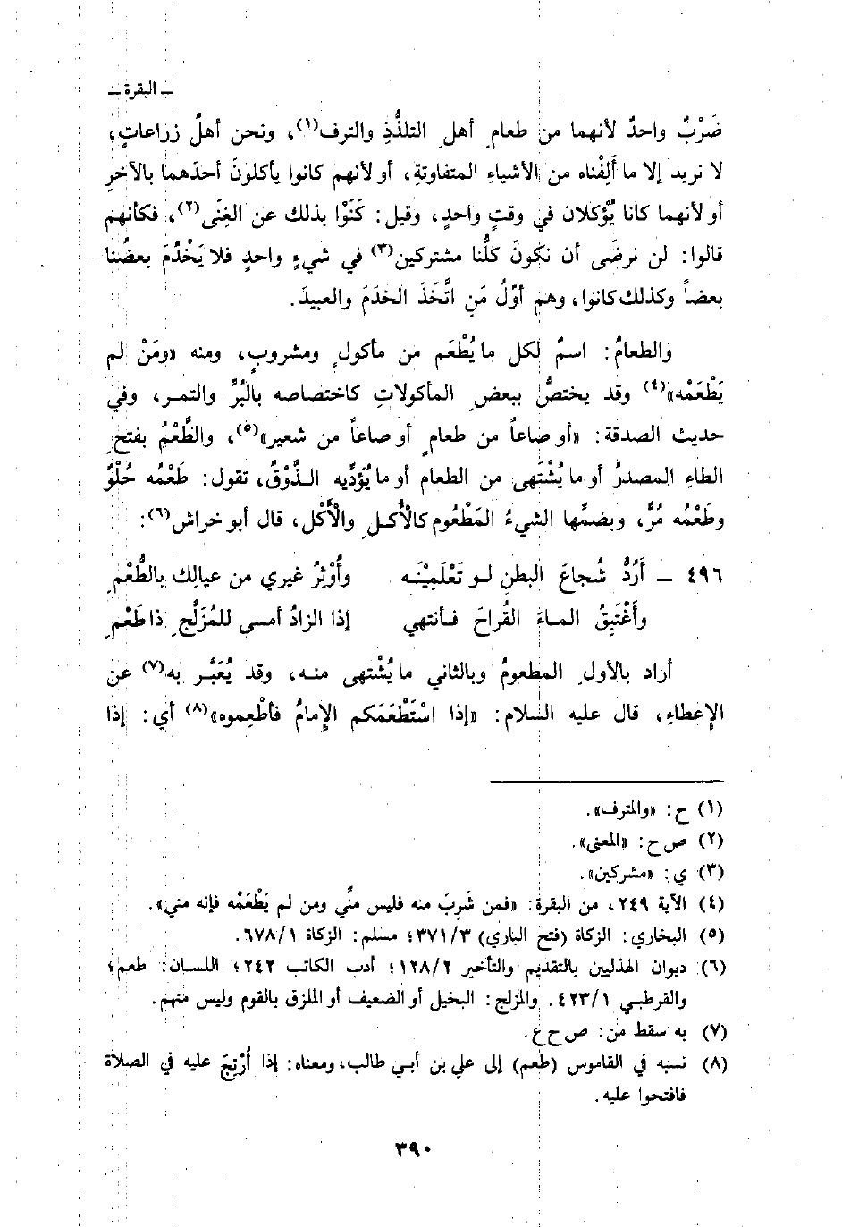 496 - أَرُدُّ شُجاعَ البطنِ لو تَعْلَمِيْنَه ... وأُوْثِرُ غيري من عيالِك بالطَّعْمِ