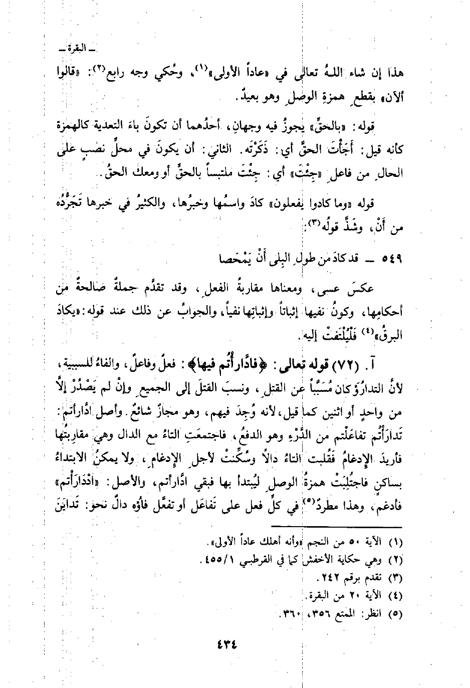 549 - قد كادَ من طولِ البِلى أَنْ يَمْحَصا ... عكسَ عسى، ومعناها مقاربةُ الفعلِ، وقد تقدَّم جملةٌ صالحةٌ من أحكامِها، وكونُ نفيها إثباتاً وأثباتِها نفياً، والجوابُ عن ذلك عند قوله: {يَكَادُ البرق} [البقرة: 20] فَلْيُلْتَفتْ إليه.