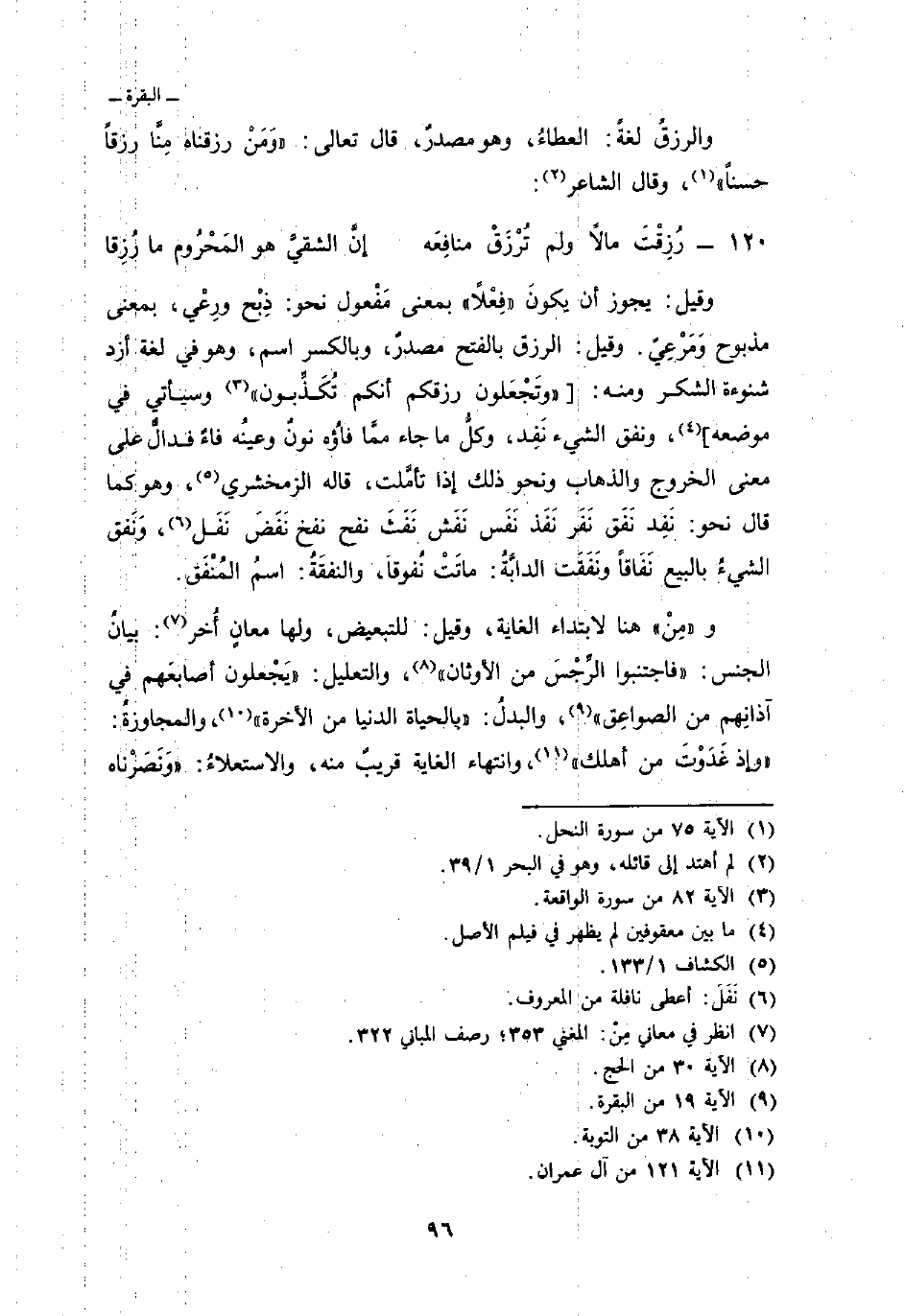 وقيل: يجوز أن يكونَ «فِعلاً» بمعنى مَفْعول نحو: ذِبْح ورِعْي، بمعنى مذبوح وَمَرْعِيّ. وقيل: الرزق بالفتح مصدرٌ، وبالكسر اسم، وهو في لغة أزد شنوءة الشكر ومنه: {وَتَجْعَلُونَ رِزْقَكُمْ أَنَّكُمْ تُكَذِّبُونَ} [الواقعة: 82] وسيأتي في موضعه] ، ونفق الشيء نَفِد، وكلُّ ما جاء ممَّا فاؤُه نونٌ وعينُه فاءٌ فدالٌ على معنى الخروج والذهاب ونحو ذلك إذا تأمَّلت، قال الزمخشري، وهو كما قال نحو: نَفِد نَفَق نَفَر نَفَذ نَفَس نَفَش نَفَثَ نفح نفخ نَفَضَ نَفَل، وَنَفق الشيءُ بالبيع نَفَاقاً ونَفَقَت الدابَّةُ: ماتَتْ نُفوقاً: والنفقَةُ: اسمُ المُنْفَق.