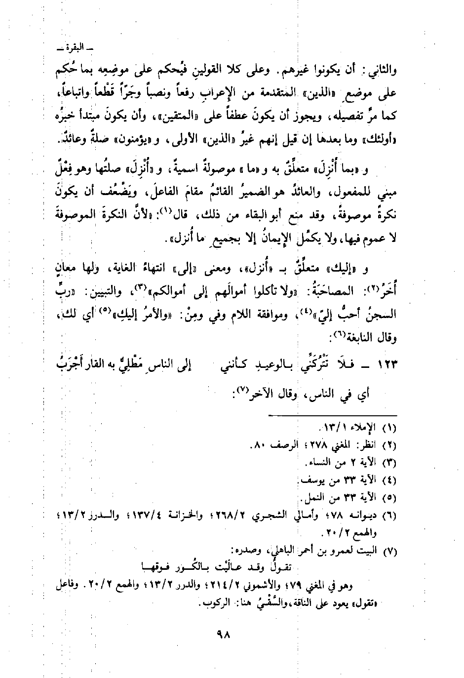 والثاني: أن يكونوا غيرهم. وعلى كلا القولينِ فيُحكم على موضعِه بما حُكم على موضعِ «الذين» المتقدمة من الإِعرابِ رفعاً ونصباً وجَرًّا قَطْعاً واتباعاً، كما مرَّ تفصيله، ويجوز أن يكونَ عطفاً على «المتقين» ، وأن يكونَ مبتدأ خبرُه «أولئك» وما بعدها إن قيل إنهم غيرُ «الذين» الأولى، و «يؤمنون» صلةٌ وعائدٌ.