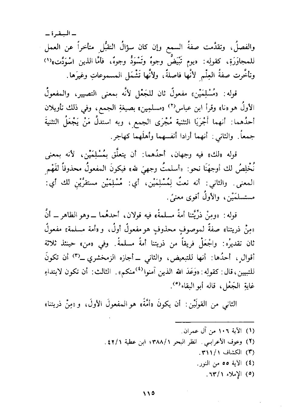 قوله: {وَمِن ذُرِّيَّتِنَآ أُمَّةً مُّسْلِمَةً} فيه قولان، أحدهُما - وهو الظاهر - أنَّ «مِنْ ذريتنا» صفةٌ لموصوفٍ محذوفٍ هو مفعولٌ أولُ، و «أمة مسلمة» مفعولٌ ثان تقديرُه: واجْعَلْ فريقاً من ذريتنا أمةً مسلمةً. وفي «من» حينئذ ثلاثة أقوالٍ، أحدُها: أنها للتبعيض، والثاني - أجازه الزمخشري - أن تكونَ لتبيين، قال: كقولِه: {وَعَدَ الله الذين آمَنُواْ مِنْكُمْ} [النور: 55] . الثالث: أن تكون لابتداءِ غايةِ الجَعْل، قاله أبو البقاء.
