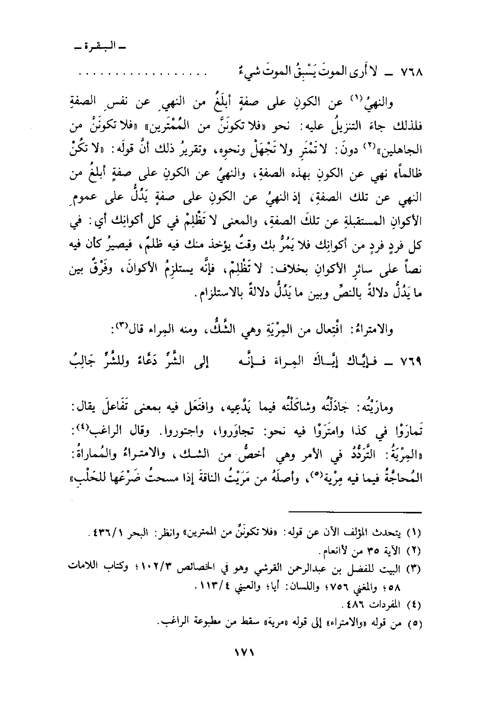 769 - فإيَّاك إيَّاكَ المِراءَ فإنَّه ... إلى الشَّرِّ دَعَّاءٌ وللشَّرِّ جَالِبُ