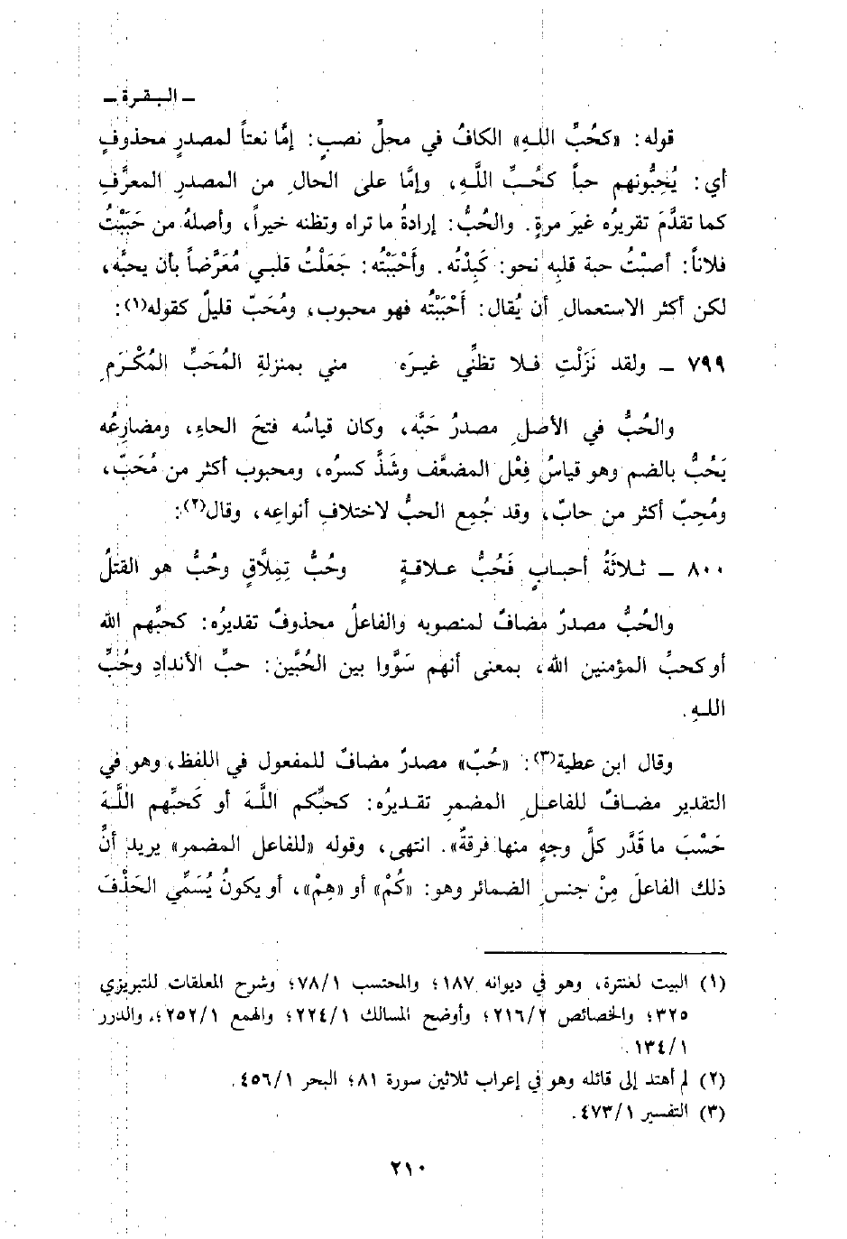 وقال ابن عطية: «حُبّ» مصدرٌ مضافٌ للمفعول في اللفظ، وهو في التقدير مضافٌ للفاعلِ المضمرِ تقديرُه: كحبِّكم اللَّهَ أو كَحبِّهم اللَّهَ حَسْبَ ما قَدَّر كلَّ وجهٍ منها فرقةٌ «. انتهى، وقوله» للفاعل المضمر «يريد أنَّ ذلك الفاعلَ مِنْ جنسِ الضمائر وهو:» كُمْ «أو» هِمْ «، أو يكونُ يُسَمِّى الحَذْف
