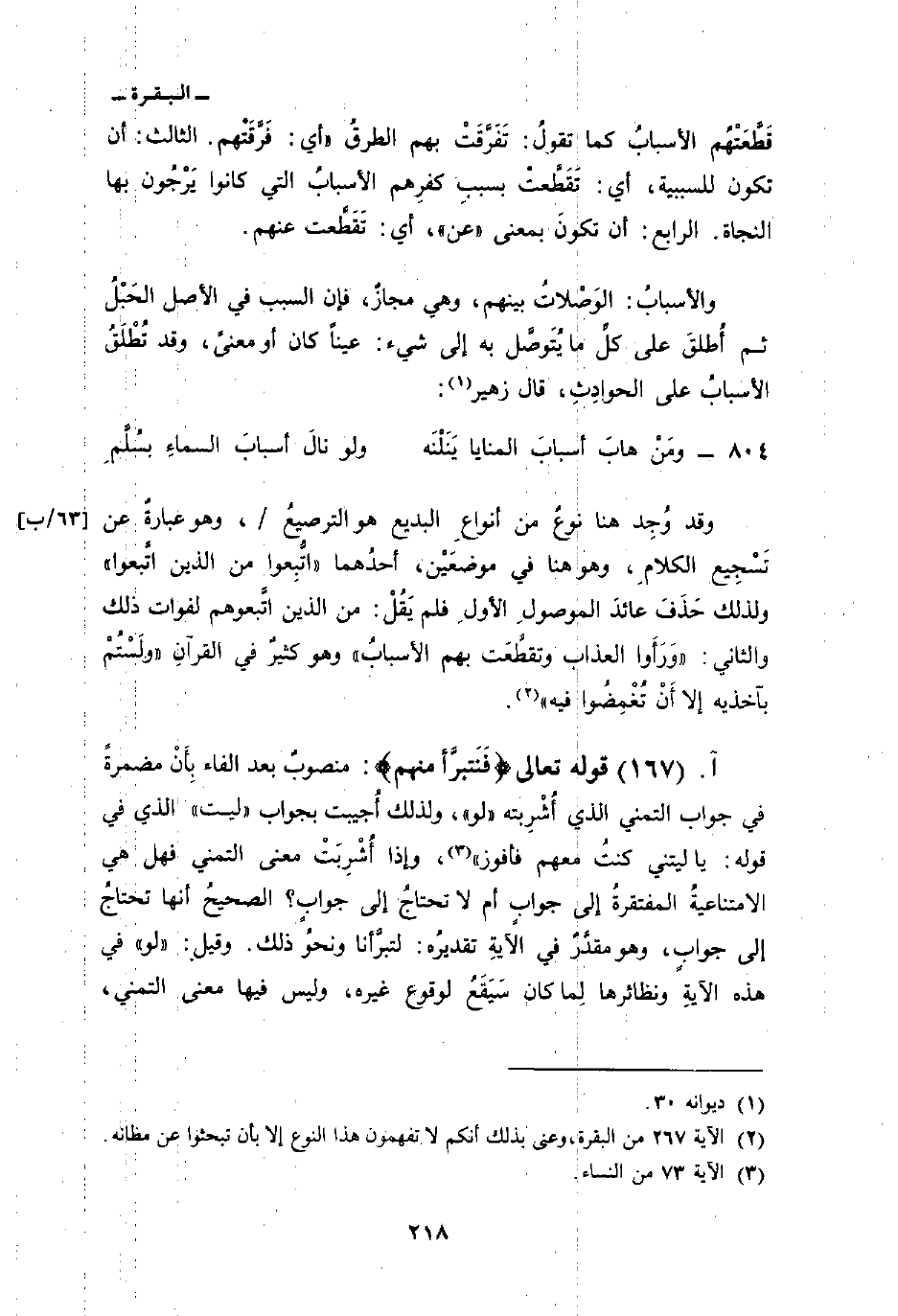 قَطَّعَتْهُم الأسبابُ كما تقولُ: تَفَرَّقَتْ بهم الطرقُ «أي: فَرَّقَتْهم. الثالث: أن تكون للسببية، أي: تَقَطَّعتْ بسببِ كفرِهم الأسبابُ التي كانوا يَرْجُون بها النجاة. الرابع: أن تكونَ بمعنى» عن «، أي: تَقَطَّعت عنهم.
