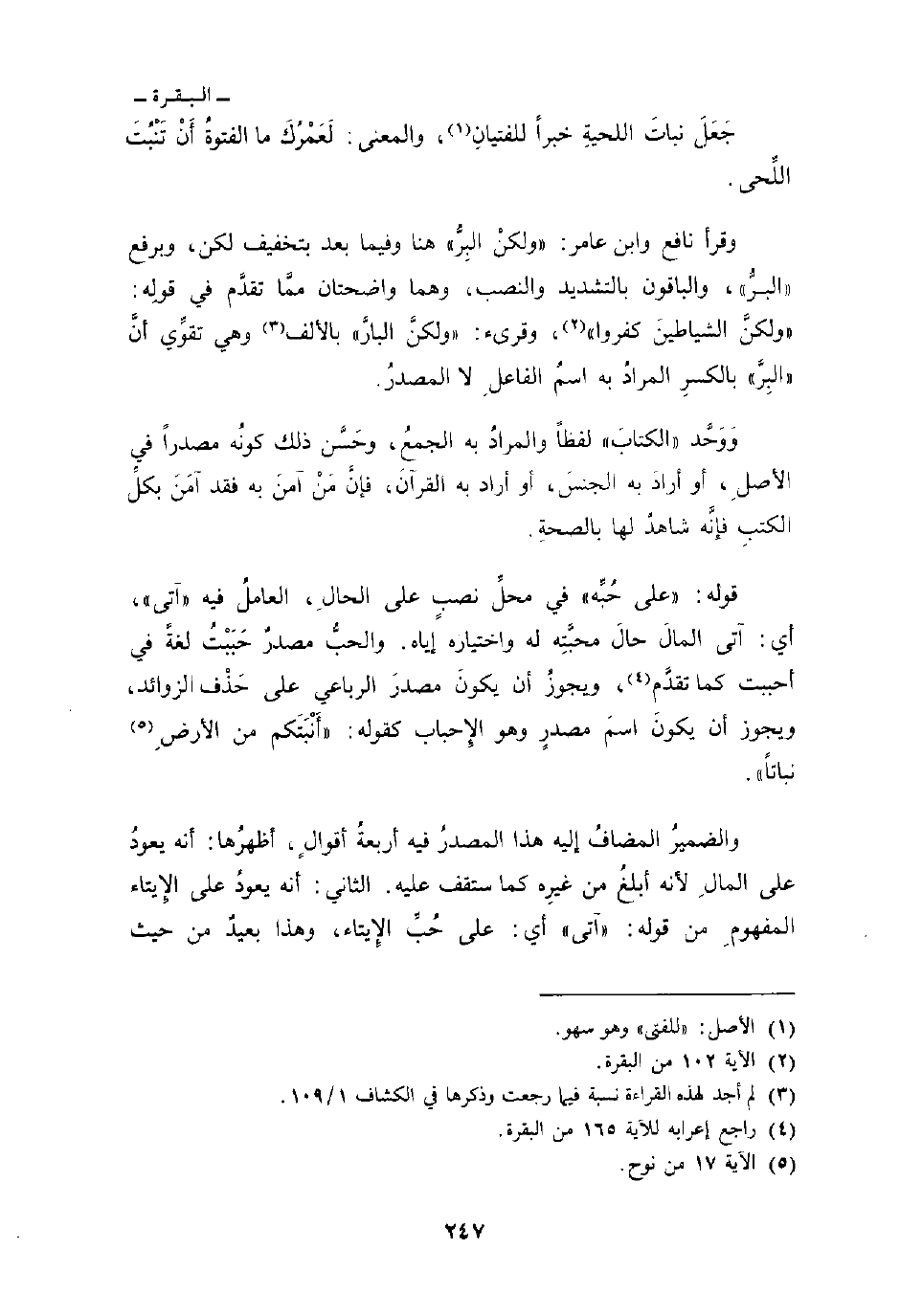 والضميرُ المضافُ إليه هذا المصدرُ فيه أربعةُ أقوالٍ. أظهرُها: أنه يعودُ على المالِ لأنه أبلغُ من غيرِه كما ستقف عليه. الثاني: أنه يعودُ على الإِيتاء المفهومِ من قوله:» آتى «أي: على حُبِّ الإِيتاء، وهذا بعيدٌ من حيث