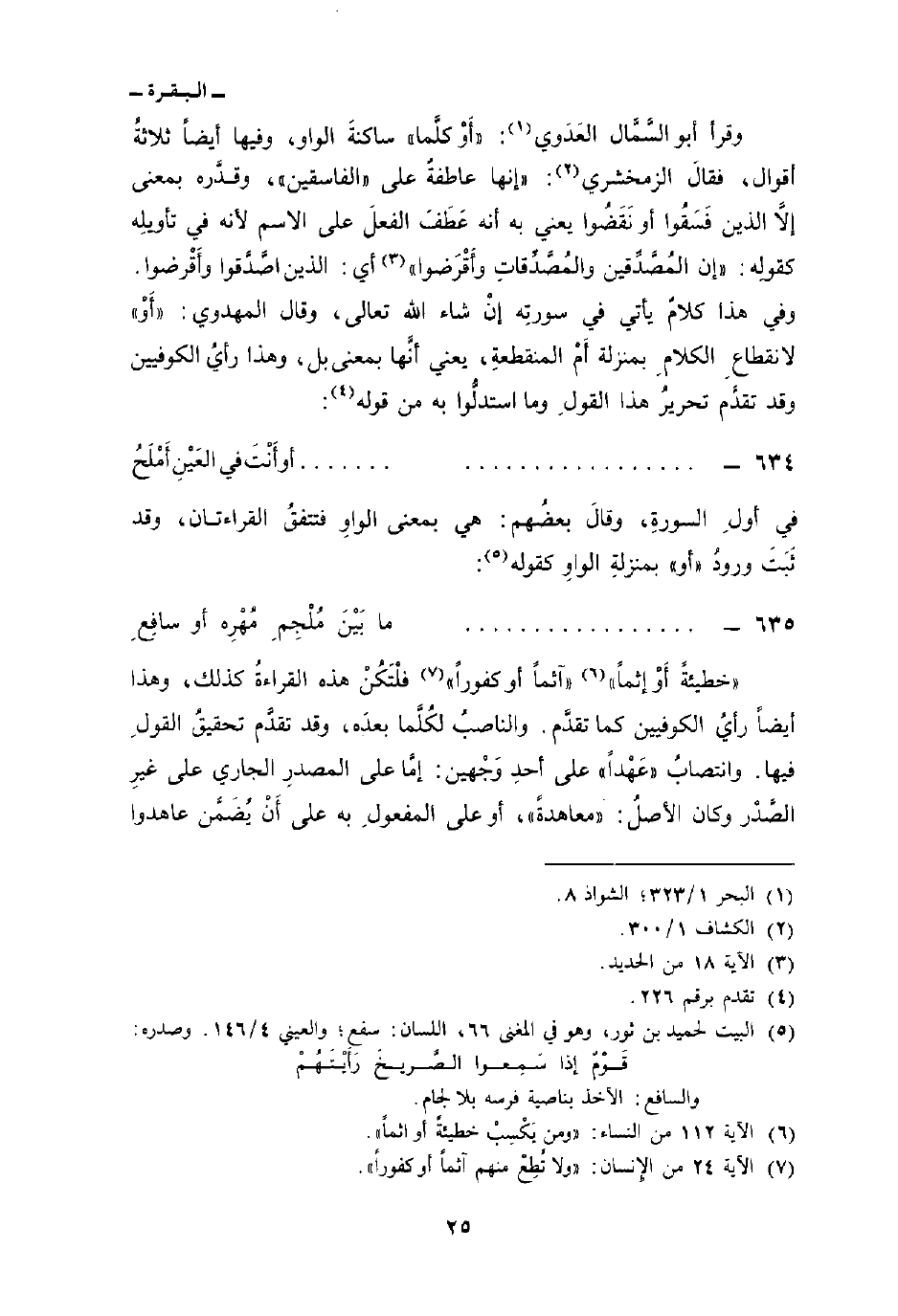 في أولِ السورةِ، وقالَ بعضُهم: هي بمعنى الواوِ فتتفقُ القراءتان، وقد ثَبَتَ ورودُ» أو «بمنزلةِ الواوِ كقوله: