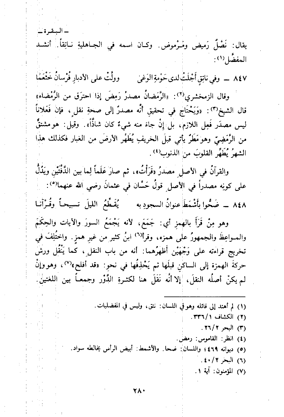والقرآنُ في الأصلِ مصدرُ» قَرَأْتُ «، ثم صارَ عَلَماً لِما بين الدَّفَّتْينِ ويَدُلُّ على كونِه مصدراً في الأصلِ قولُ حَسَّان في عثمانَ رضي الله عنهما: