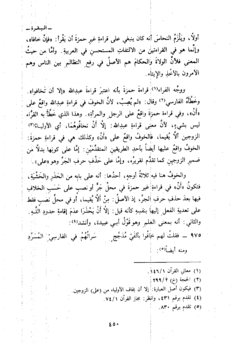 أولاً، ويَلْزَمُ النحاسَ أنه كان ينبغي على قراءةِ غيرِ حمزةَ أن يَقْرأ: «فإنْ خافا» ، وإنَّما هو في القراءتين من الالتفاتِ المستحسنِ في العربيةِ. وأمَّا من حيثُ المعنى فلأنَّ الولاةَ هم الأًصلُ في رفعِ التظالمِ بين الناس وهم الآمرون بالأخْذِ والإِيتاء.