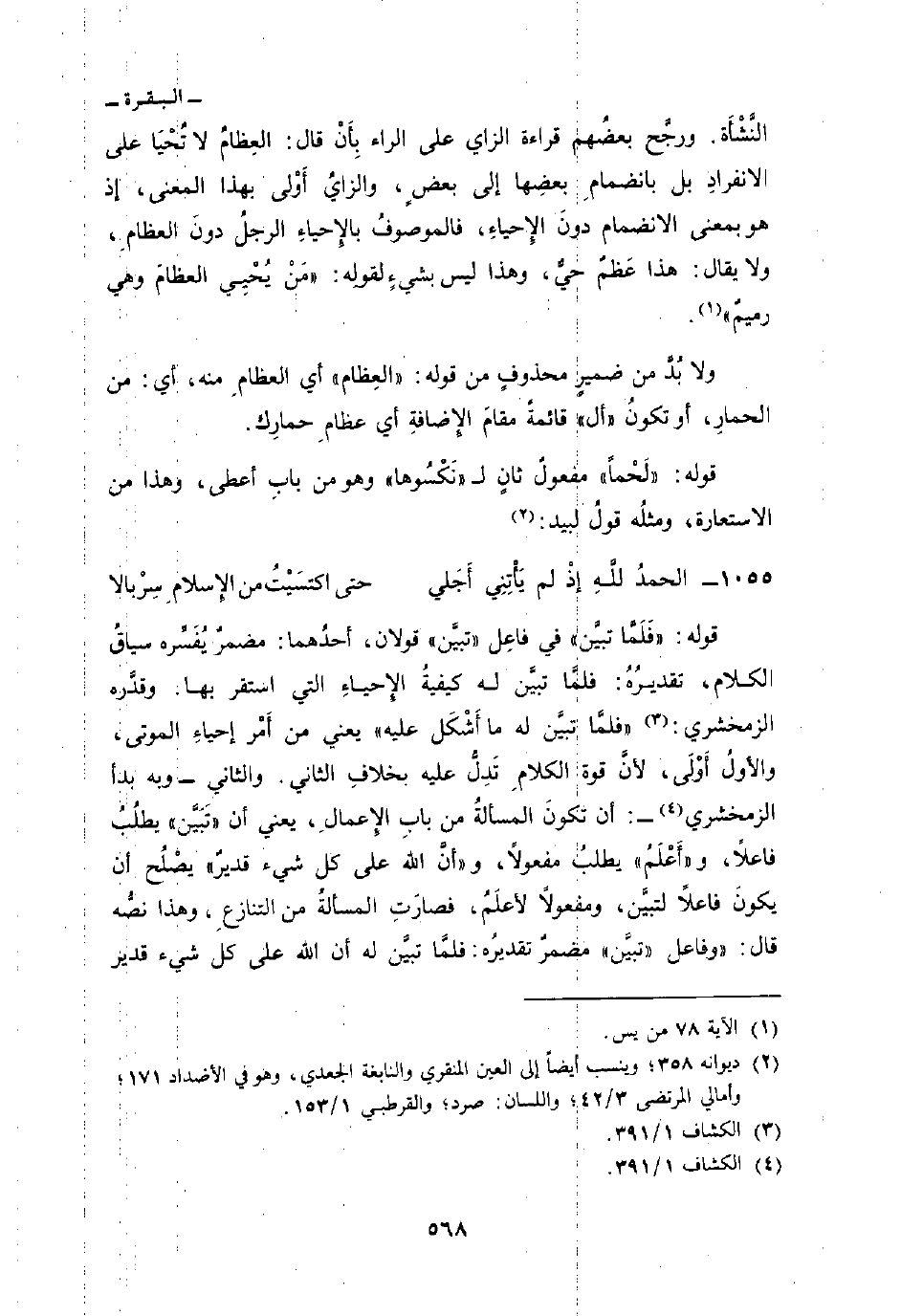 ولا بُدَّ من ضميرٍ محذوفٍ من قوله:» العِظام «أي العظامِ منه، أي: من الحمارِ، أو تكونُ» أل «قائمةً مقامَ الإِضافة أي عظامِ حمارِك.
