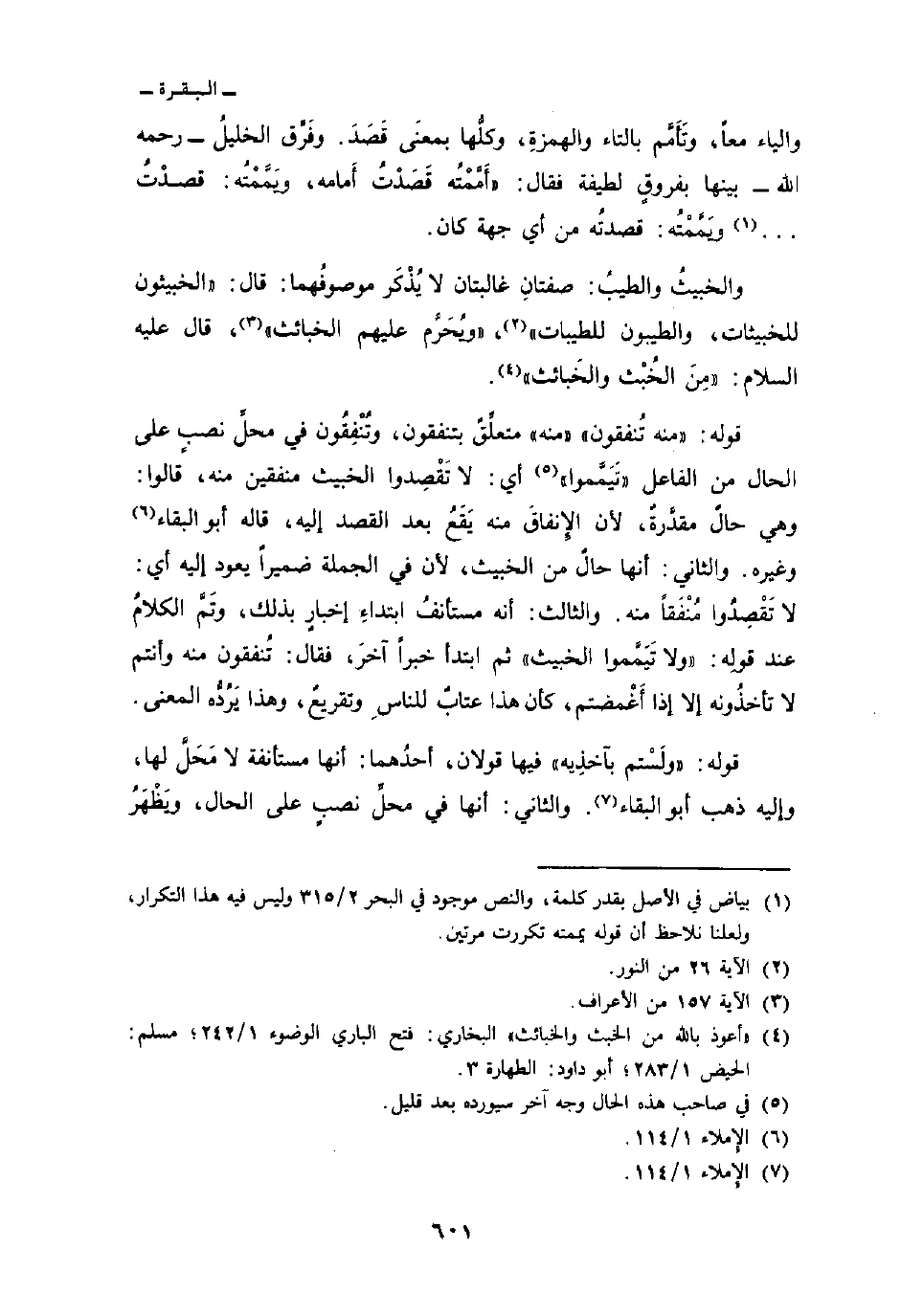 قوله: {مِنْهُ تُنْفِقُونَ} » منه «متعلِّقٌ بتنفقون، وتُنْفِقُون في محلِّ نصبٍ على الحال من الفاعل {تَيَمَّمُواْ} أي: لا تَقْصِدوا الخبيث منفقين منه، قالوا: وهي حالٌ مقدَّرةٌ، لأن الإِنفاقَ منه يَقَعُ بعد القصد إليه، قاله أبو البقاء وغيره. والثاني: أنها حالٌ من الخبيث، لأن في الجملة ضميراً يعود إليه أي: لا تَقْصِدُوا مُنْفَقاً منه.