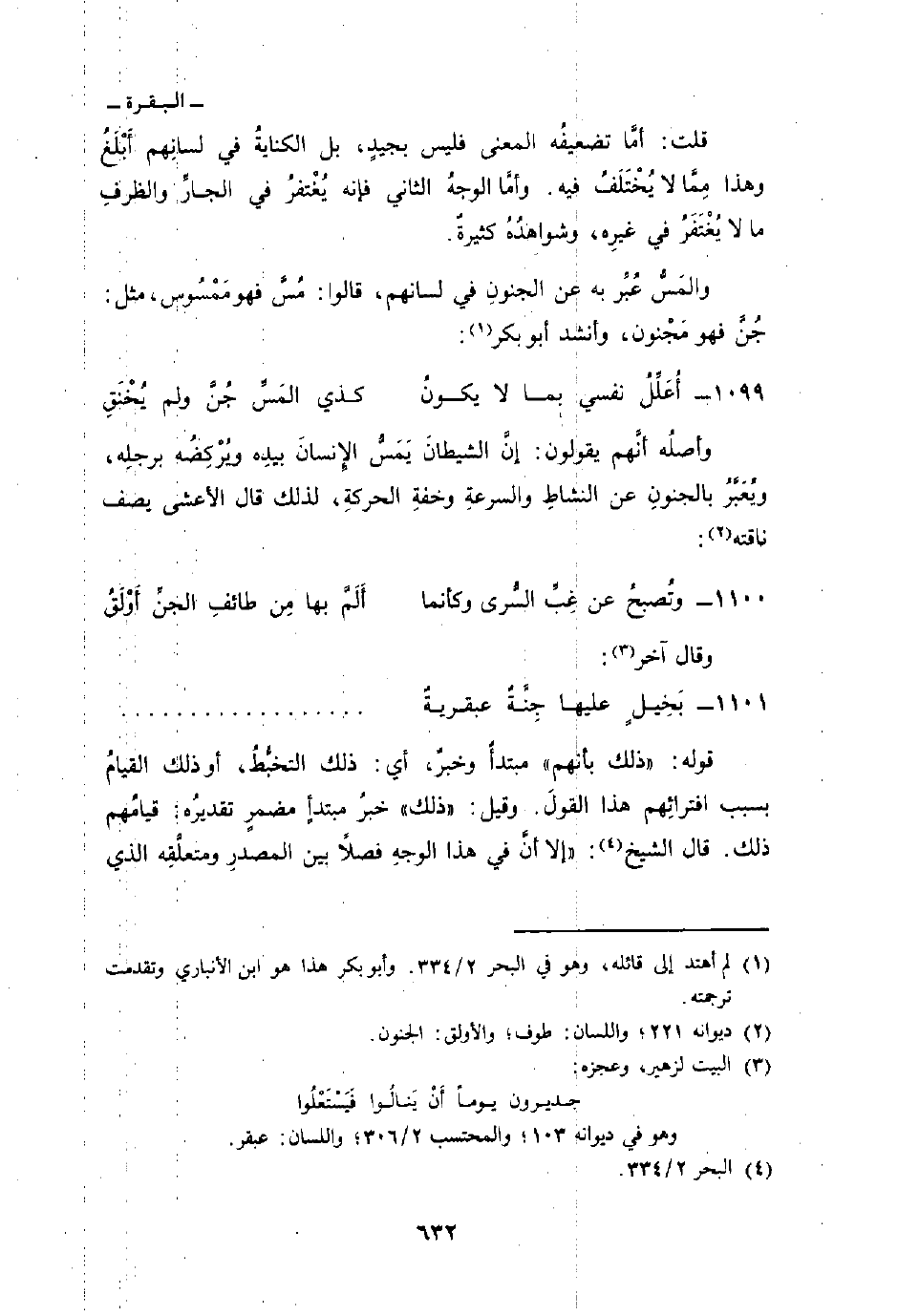 والمَسُّ عُبِّر به عن الجنونِ في لسانهم، قالوا: مُسَّ فهو مَمْسُوس، مثل: جُنَّ فهو مَجْنون، وأنشد أبو بكر: