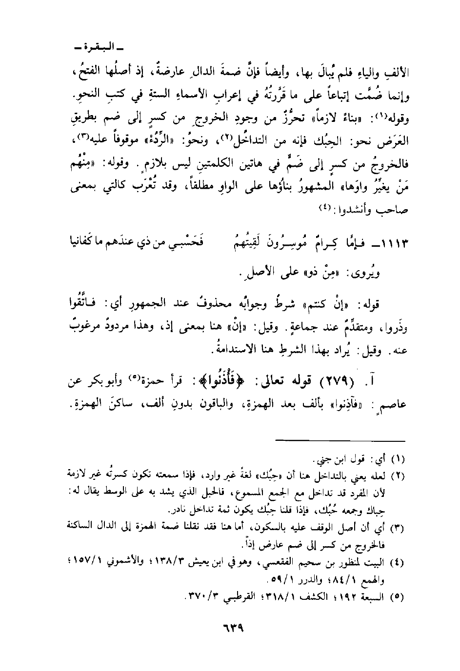 الألفِ والياءِ فلم يُبالَ بها، وأيضاً فإنَّ ضمةَ الدالِ عارضةٌ، إذ أصلُها الفتحُ، وإنما ضُمَّت إتباعاً على ما قَرَّرتُهُ في إعرابِ الأسماءِ الستةِ في كتبِ النحوِ: وقوله: «بناءً لازماً» تحرُّزٌ من وجودِ الخروجِ من كسرٍ إلى ضم بطريقِ العَرَض نحو: الحِبُك فإنه من التداخُل، ونحوُ: «الرِّدُءْ» موقوفاً عليه، فالخروجُ من كسرٍ إلى ضَمٍّ في هاتين الكلمتينِ ليس بلازمٍ. وقوله: «مِنْهُم مَنْ يغيِّرُ واوَها» المشهورُ بناؤُهاعلى الواوِ مطلقاً، وقد تُعْرَب كالتي بمعنى صاحب وأنشدوا: