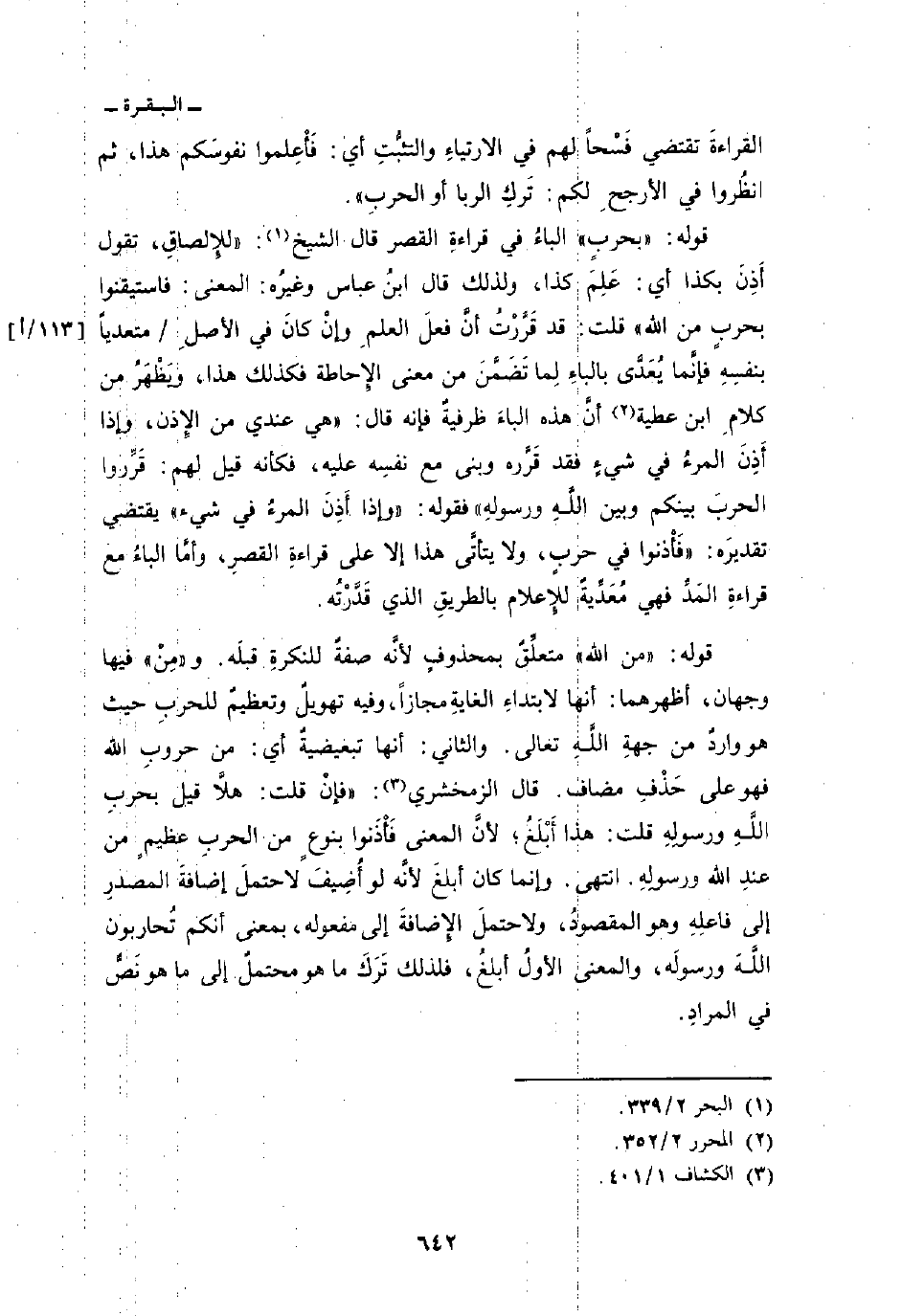 القراءةَ تقتضي فَسْحاً لهم في الارتياءِ والتثبُّتِ أي: فَأْعِلموا نفوسَكم هذا، ثم انظُروا في الأرجحِ لكم: تَركِ الربا أو الحربِ «.