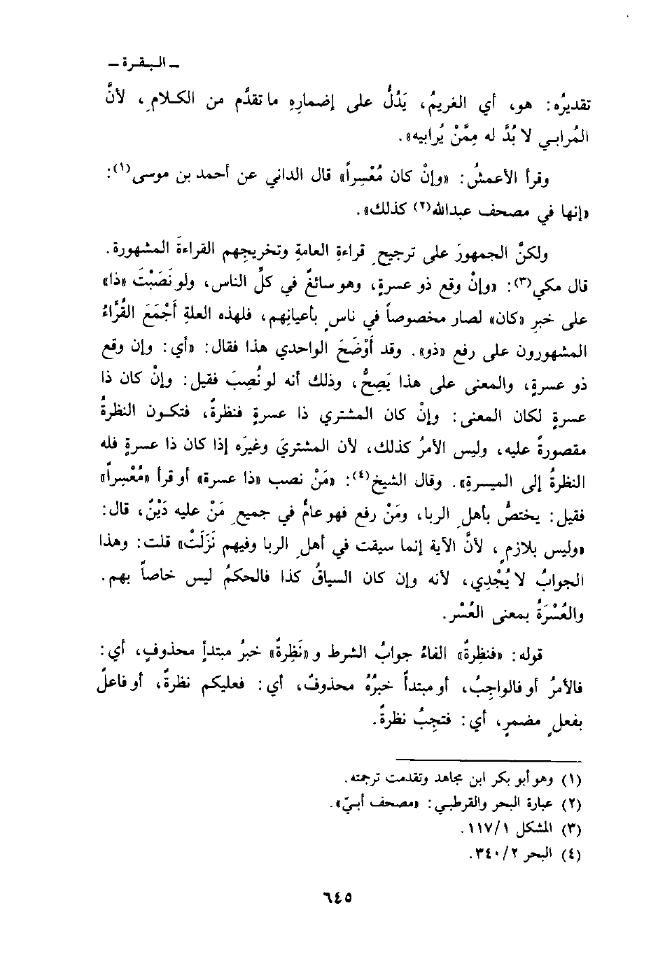 وقرأ الأعمشُ: «وإنْ كان مُعْسِراً» قال الداني عن أحمد بن موسى: «إنها في مصحف عبد الله كذلك.
