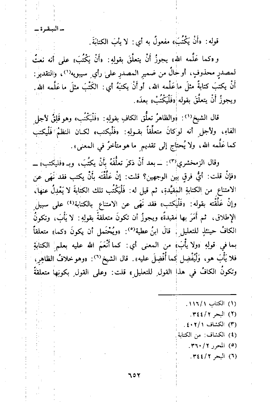 وقال الزمخشري: - بعد أَنْ ذكرَ تعلُّقَهُ بِأَنْ يكتُبَ، وب «فليكتب» - «فإنْ قلت: أيُّ فرقٍ بين الوجهين؟ قلت: إنْ عَلَّقْتَه بأَنْ يكتب فقد نَهَى عن الامتناعِ من الكتابةِ المقيَّدةِ، ثم قيل له: فَلْيَكْتُب تلك الكتابةَ لا يَعْدِلُ عنها، وإنْ عَلَّقْته بقوله:» فَلْيكتب «فقد نَهَى عن الامتناعِ بالكتابة على سبيلِ الإِطلاق، ثم أَمَرَ بها مقيدةً» ويجوزُ أن تكونَ متعلقةً بقولِهِ: لا يَأْبَ، وتكونُ الكافُ حينئذٍ للتعليلِ. قالَ ابنُ عطية: «ويُحْتَمل أن يكونَ» كما «متعلقاً بما في قولِه» ولا يأْبَ «من المعنى أي: كما أَنْعَمَ الله عليه بعلمِ الكتابةِ فلا يَأْبَ هو، وَلْيُفْضِل كما أُفْضِلَ عليه» . قال الشيخ: «وهو خلافُ الظاهِرِ، وتكونُ الكافُ في هذا القولِ للتعليلِ» قلت: وعلى القولِ بكونِها متعلقةً