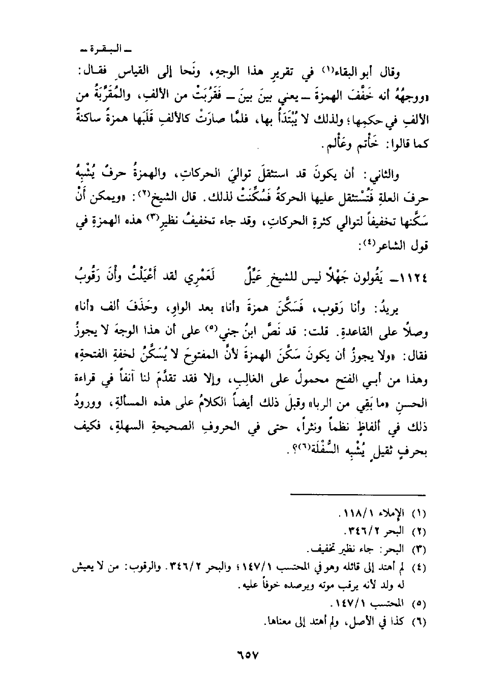 والثاني: أن يكونَ قد استثقلَ تواليَ الحركاتِ، والهمزةُ حرفٌ يُشْبِهُ حرفَ العلةِ فَتُسْتثقل عليها الحركةُ فَسُكِّنَتْ لذلك. قال الشيخ:» ويمكن أَنْ سَكَّنها تخفيفاً لتوالي كثرةِ الحركاتِ، وقد جاء تخفيفُ نظيرِ هذه الهمزة في قول الشاعر: