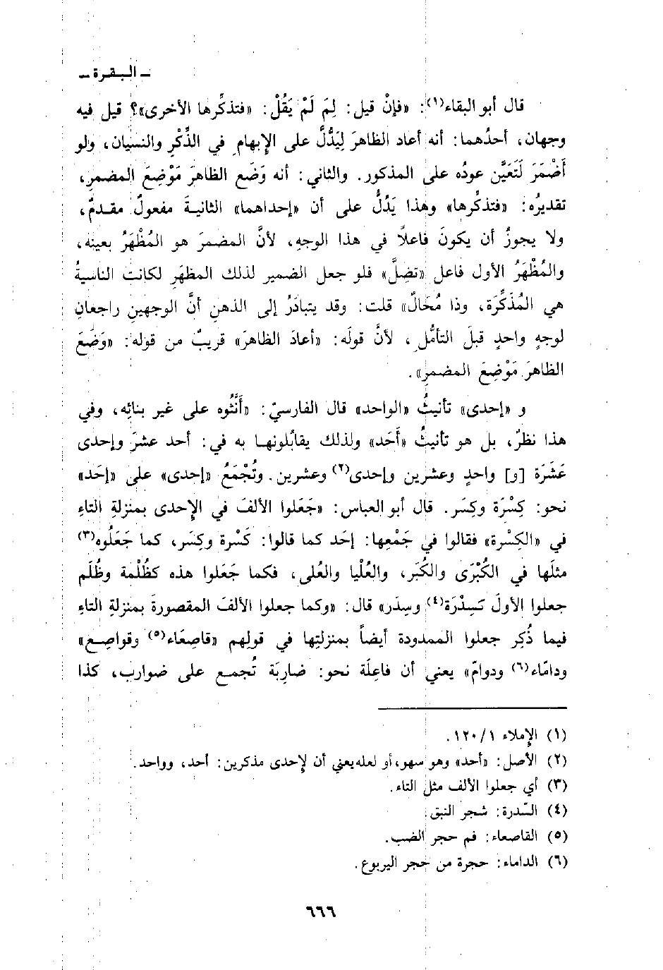 و «إحدى» تأنيثُ «الواحد» قال الفارسيّ: «أَنَّثُوه على غير بنائِه، وفي هذا نظرٌ، بل هو تأنيثُ» أَحَد «ولذلك يقابُلونها به في: أحد عشرَ وإحدى عَشَرَة [و] واحدٍ وعشرين وإحدى وعشرين. وتُجْمَعُ» إحدى «على» إحَد «نحو: كِسْرَة وكِسَر. قال أبو العباس:» جَعَلَوا الألفَ في الإِحدى بمنزلةِ التاء في «الكِسْرة» فقالوا في جَمْعِها: إحَد كما قالوا: كَسْرة وكِسَر، كما جَعَلُوه مثلَها في الكُبْرَى والكُبَر، والعُلْيا والعُلى، فكما جَعَلوا هذه كظُلْمة وظُلَم جعلوا الأولَ كسِدْرَة وسِدَر «قال:» وكما جعلوا الألفَ المقصورةَ بمنزلةِ التاءِ فيما ذُكِر جعلوا الممدودة أيضاً بمنزلتِها في قولِهم «قاصِعَاء وقواصِع» ودامّاء ودوامّ «يعني أن فاعِلَة نحو: ضارِِبَة تُجمع على ضوارب، كذا