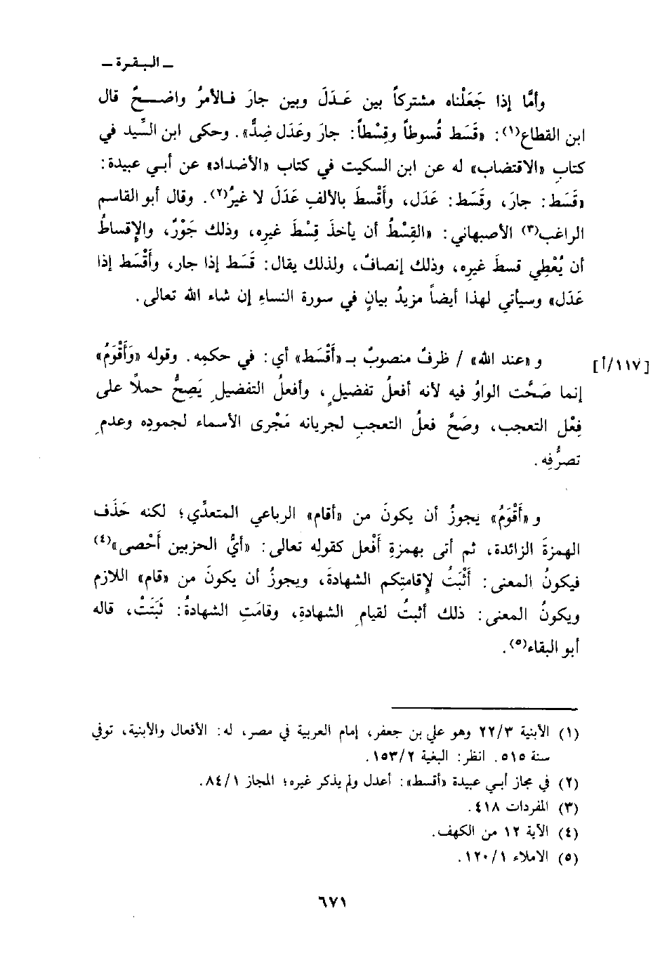 وأمَّا إذا جَعَلْناه مشتركاً بين عَدَلَ وبين جارَ فالأمرُ واضحٌ قال ابن القطاع: «قَسَط قُسوطاً وقِسْطاً: جارَ وعَدَل ضِدٌّ» . وحكى ابن السِّيد في كتابِ «الاقتضاب» له عن ابن السكيت في كتاب «الأضداد» عن أبي عبيدة: «قَسَط: جارَ، وقَسَط: عَدَل، وأَقْسطَ بالألفِ عَدَلَ لا غير. وقال أبو القاسم الراغب الأصبهاني:» القِسْطُ أن يأخذَ قِسْطَ غيرِه، وذلك جَوْرٌ، والإِقساطُ أن يُعْطِي قسطَ غيرِه، وذلك إنصافٌ، ولذلك يقال: قَسَط إذا جار، وأَقْسَط إذا عَدَل «وسيأتي لهذا أيضاً مزيدُ بيانٍ في سورة النساءِ إن شاء الله تعالى.