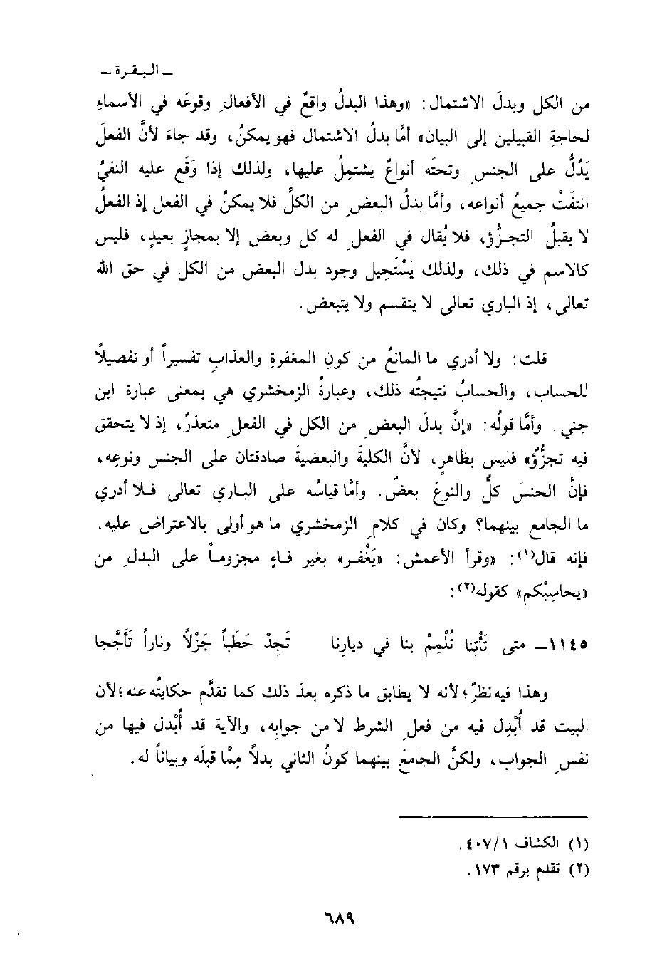 وهذا فيه نظرٌ؛ لأنه لا يطابق ما ذكره بعدَ ذلك كما تقدَّم حكايتُه عنه؛ لأن البيت قد أُبْدِل فيه من فعلِ الشرط لا من جوابِه، والآية قد أُبْدل فيها من نفسِ الجواب، ولكنَّ الجامعَ بينهما كونُ الثاني بدلاً مِمَّا قبلَه وبياناً له.