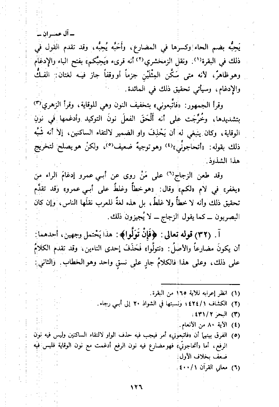 وقرأ الجمهور: «فاتِّبعوني» بتخفيف النون وهي للوقاية، وقرأ الزهري بتشديدها، وخُرِّجَت على أنه أَلْحَقَ الفعلَ نونَ التوكيد وأدغمها في نونِ الوقاية، وكان ينبغي له أن يَحْذِفَ واو الضمير لالتقاء الساكنين، إلا أنه شَبَّه ذلك بقوله: {أتحاجواني} [الأنعام: 80] وهو توجيهُ ضعيف، ولكنْ هو يصلح لتخريج هذا الشذوذ.
