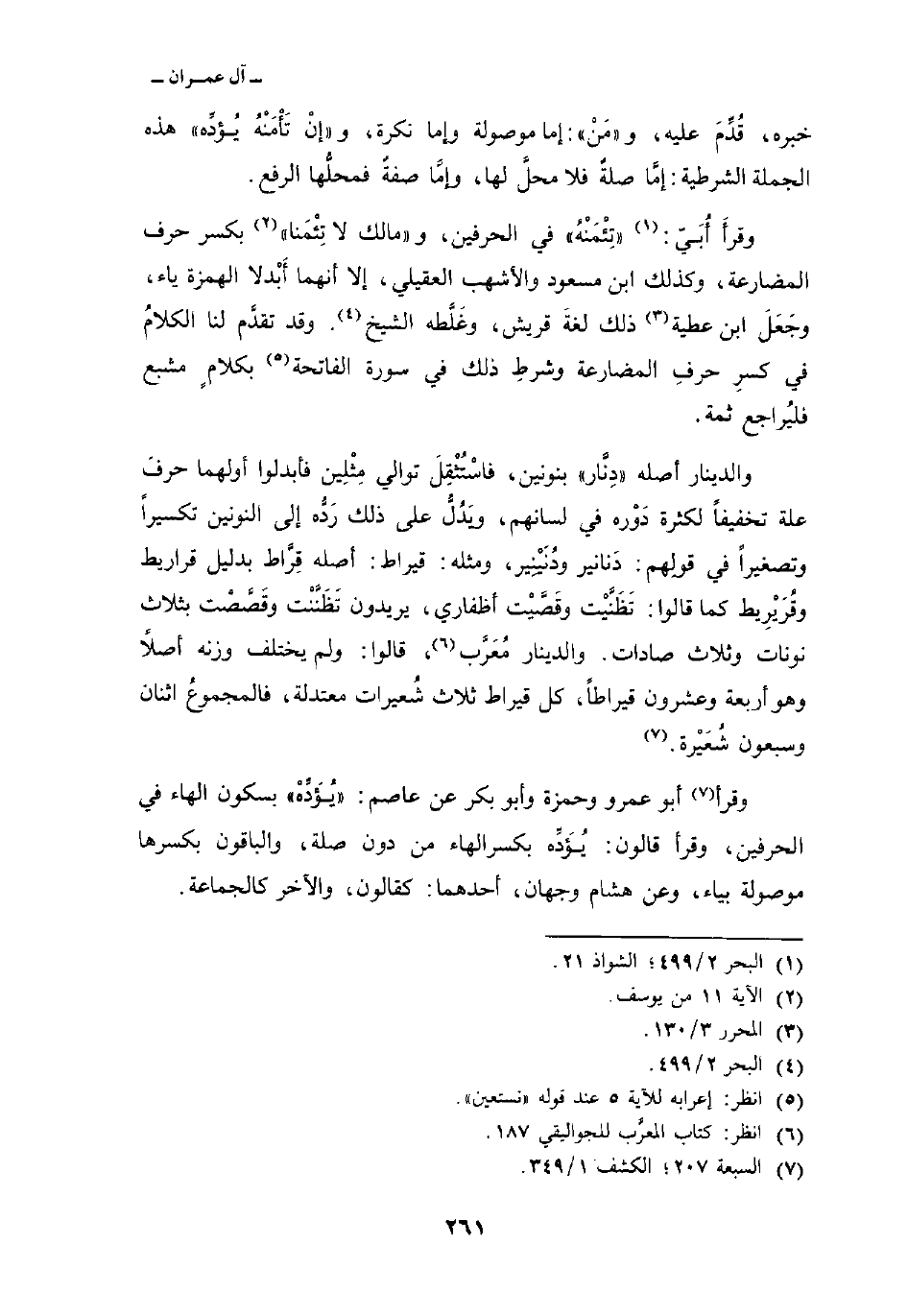 وقرأ أبو عمرو وحمزة وأبو بكر عن عاصم: «يُؤَدِّهْ» بسكون الهاء في الحرفين، وقرأ قالون: يُؤَدِّه بكسر الهاء من دون صلة، والباقون بكسرها موصولة بياء، وعن هشام وجهان، أحدهما: كقالون، والآخر كالجماعة.