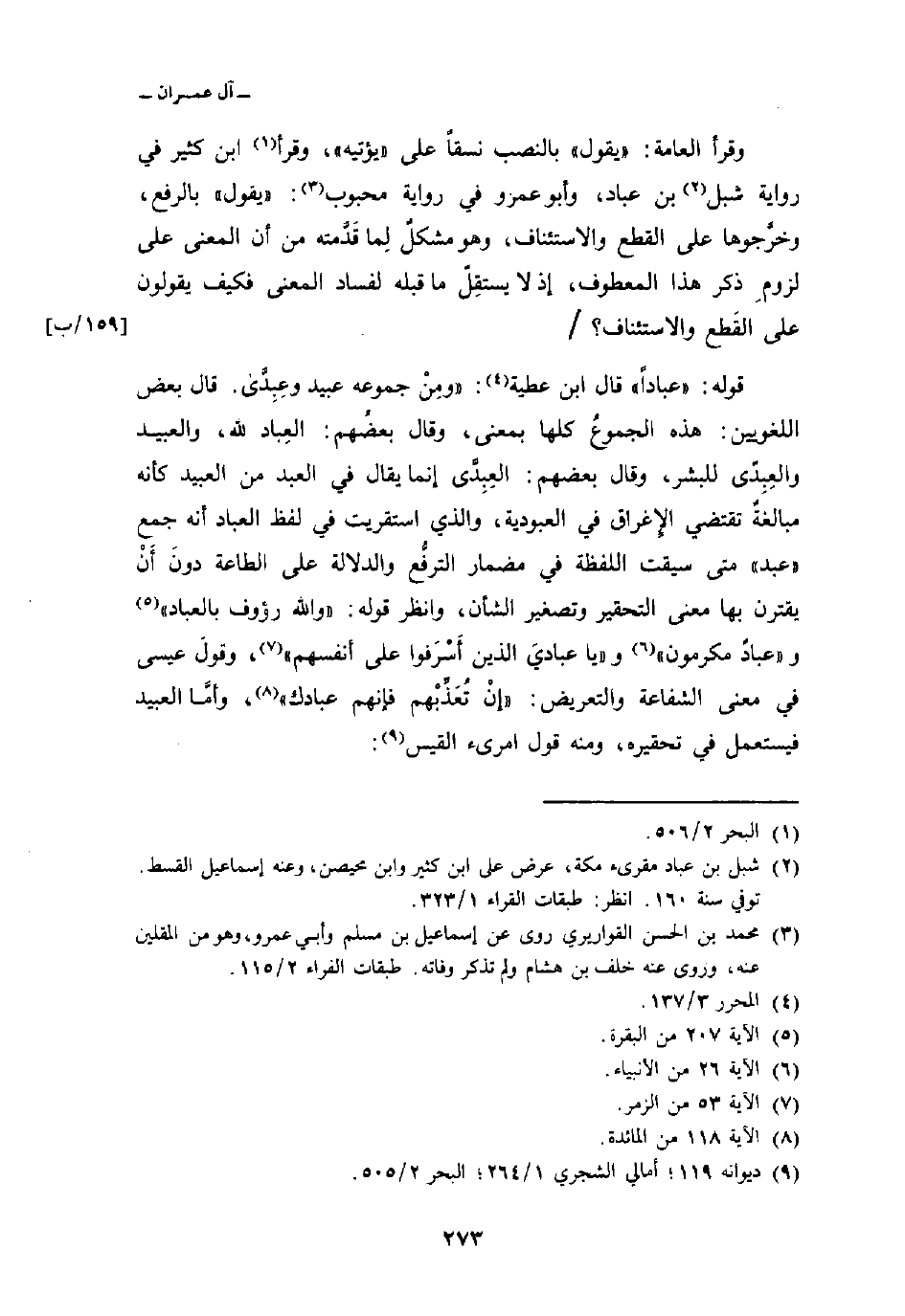 قوله: {عِبَاداً} قال ابن عطية: «ومِنْ جموعه عبيد وعِبِدَّى. قال بعض اللغويين: هذه الجموعُ كلها بمعنى، وقال بعضُهم: العِباد لله، والعبيد والعِبِدّى للبشر، وقال بعضهم: العِبِدَّى إنما يقال في العبد من العبيد كأنه مبالغةٌ تقتضي الإِغراق في العبودية، والذي استقريت في لفظ العباد أنه جمع» عبد «متى سيقت اللفظة في مضمار الترفُّع والدلالة على الطاعة دونَ أَنْ يقترن بها معنى التحقير وتصغير الشأن، وانظر قوله: {والله رَؤُوفٌ بالعباد} [البقرة: 207] و {عِبَادٌ مُّكْرَمُونَ} [الأنبياء: 26] و {ياعبادي الذين أَسْرَفُواْ على أَنفُسِهِمْ} [الزمر: 53] ، وقولَ عيسى في معنى الشفاعة والتعريض: {إِن تُعَذِّبْهُمْ فَإِنَّهُمْ عِبَادُكَ} [المائدة: 118] ، وأمَّا العبيد فيستعمل في تحقيره، ومنه قول امرىء القيس: