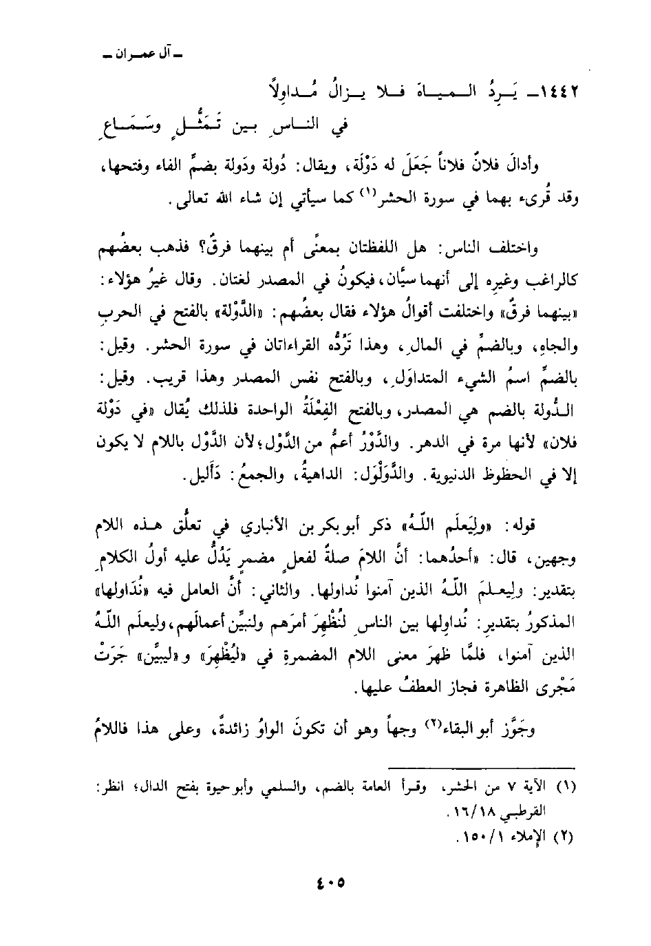 1442 - يَرِِدُ المياهَ فلا يزالُ مُداوِلاً ... في الناسِ بين تَمَثُّلٍ وسَمَاعِ