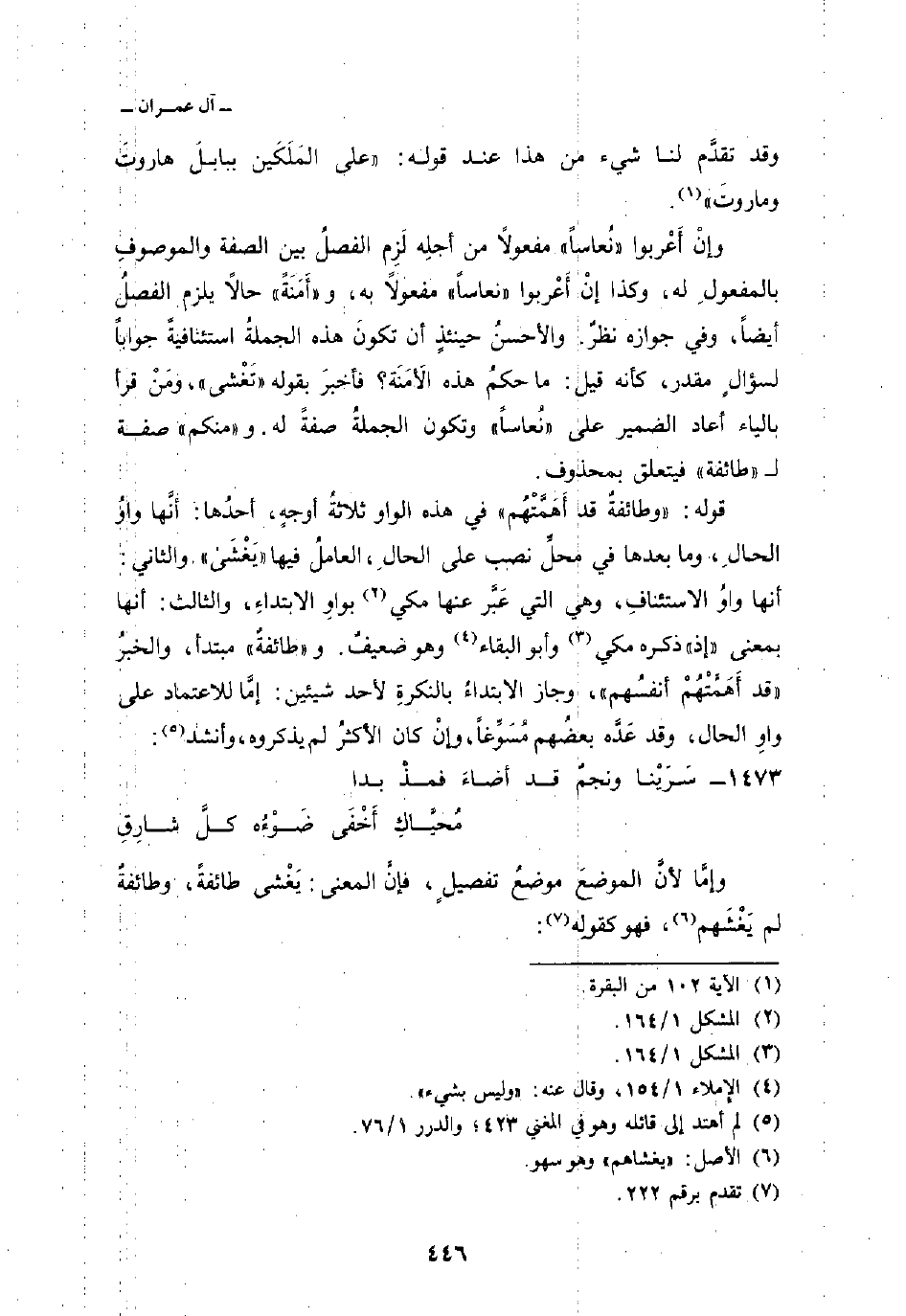 وإمَّا لأنَّ الموضعَ موضعُ تفصيلٍ، فإنَّ المعنى: يَغْشى طائفةً، وطائفةٌ لم يَغْشَهم، فهو كقولِه: