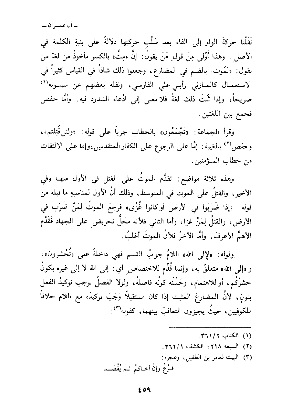 وقرأ الجماعة: «تَجْمَعُون» بالخطاب جرياً على قوله: «ولئن قُتِلتم» ، وحفص بالغيبة: إمَّا على الرجوع على الكفار المتقدمين، وإما على الالتفات من خطاب المؤمنين.