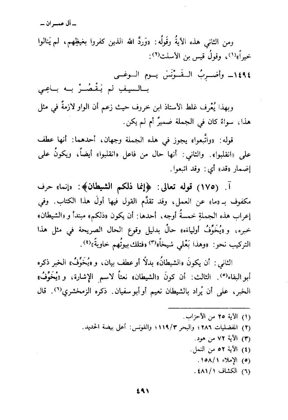 الثاني: أن يكونَ «الشيطانُ» بدلاً أو عطف بيان، و «يُخَوِّفُ» الخبر ذكره أبو البقاء. الثالث: أن كونَ «الشيطان» نعتاً لاسمِ الإِشارة، و «يُخَوِّفُ» الخبر، على أن يُراد بالشيطان نعيم أو أبو سفيان. ذكره الزمخشري. قال