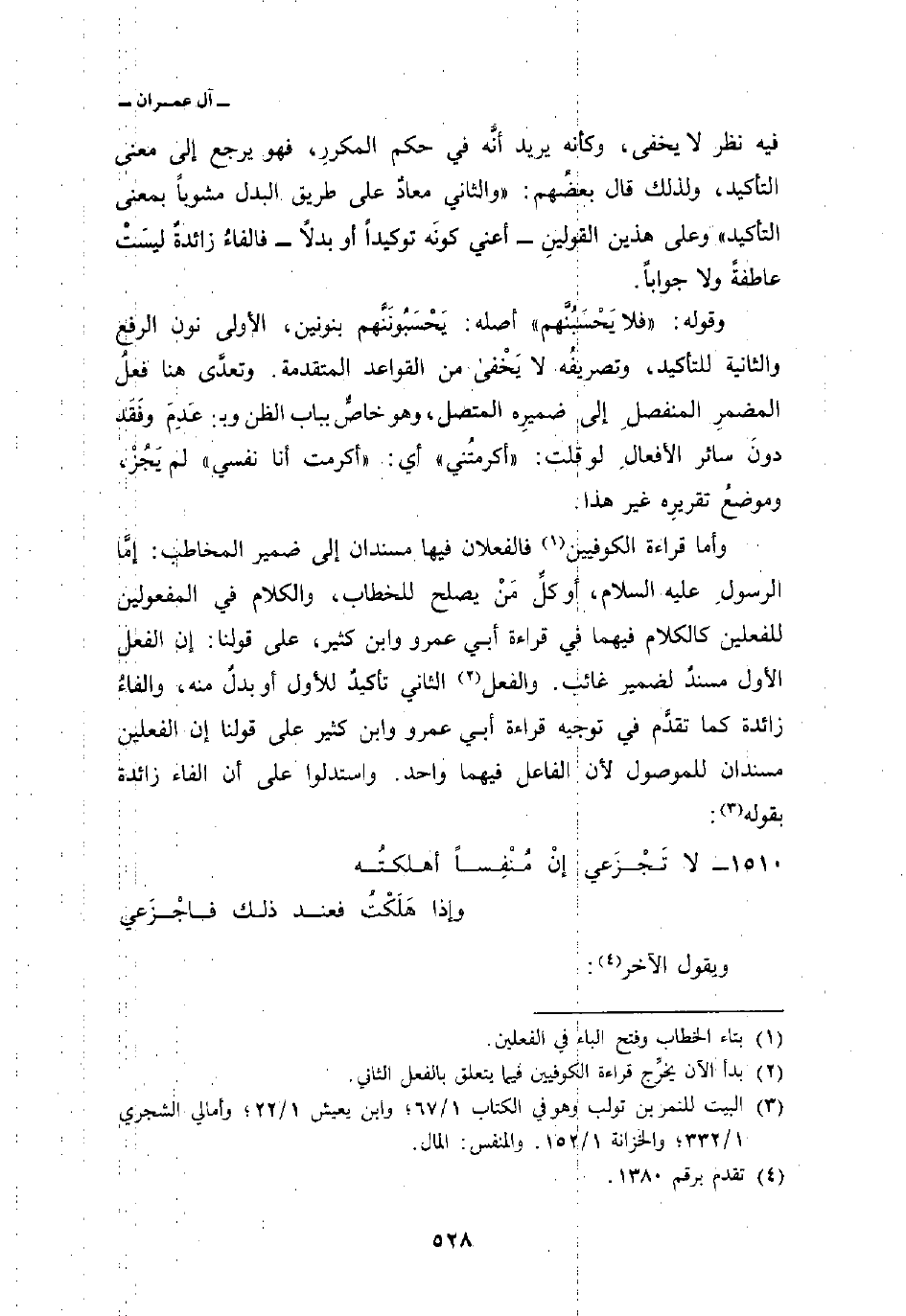 وأما قراءة الكوفيين فالفعلان فيها مسندان إلى ضمير المخاطب: إمَّا الرسولِ عليه السلام، أو كلِّ مَنْ يصلح للخطاب، والكلام في المفعولين للفعلين كالكلام فيهما في قراءة أبي عمرو وابن كثير، على قولنا: إن الفعل الأول مسندٌ لضمير غائب. والفعل الثاني تأكيدٌ للأول أو بدلٌ منه، والفاءُ زائدة كما تقدَّم في توجيه قراءة أبي عمرو وابن كثير على قولنا إن الفعلين مسندان للموصول لأن الفاعل فيها واحد. واستدلوا على أن الفاء زائدة بقوله: