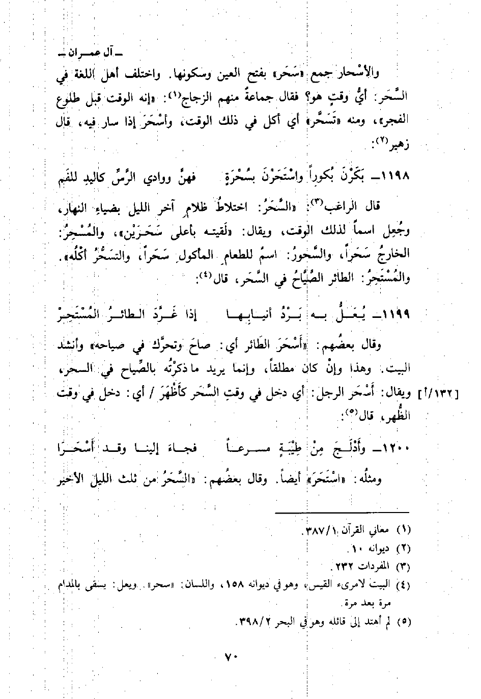 والأسْحار جمع «سَحَر» بفتح العين وسكونها. واختلف أهل اللغة في السَّحَر: أيُّ وقتٍ هو؟ فقال جماعةٌ منهم الزجاج: «إنه الوقت قبل طلوع الفجر» ، ومنه «تَسَحَّر» أي أكل في ذلك الوقت، وأسْحَرَ إذا سار فيه، قال زهير: